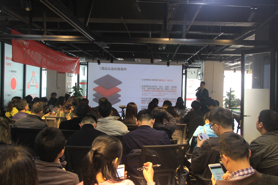 会上,吴应刚总经理主要围绕什么是高新技术企业、省内高企认定情况及政府规划、高企认定的好处及政策优惠、2018年高企认定工作安排、2018年高企认定必备条件、2018年高企认定准备资料及评分标准等六个问题作了重要讲解。