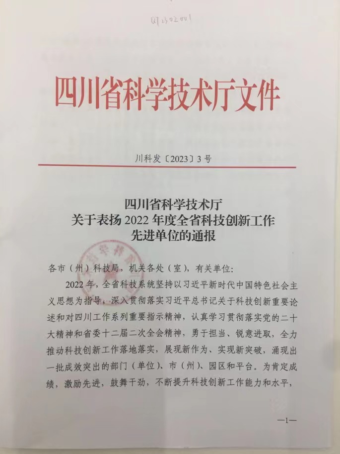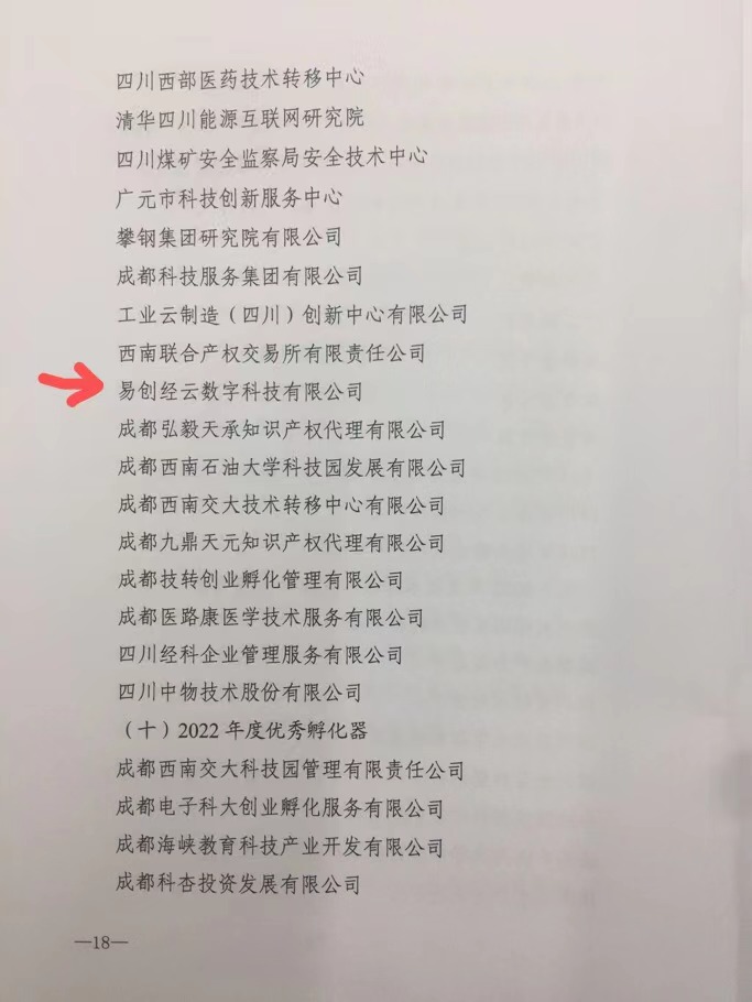 近日,四川省科学技术厅发布了《四川省科学技术厅关于表扬2022年度全省科技创新工作先进单位的通报》,表彰了2022年度全省科技创新工作先进单位,易创经云数字科技有限公司荣获2022年度省级技术转移示范机构“服务之星”。