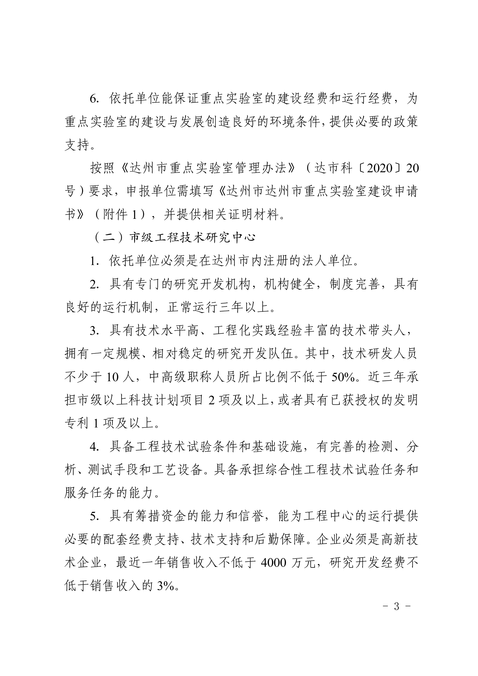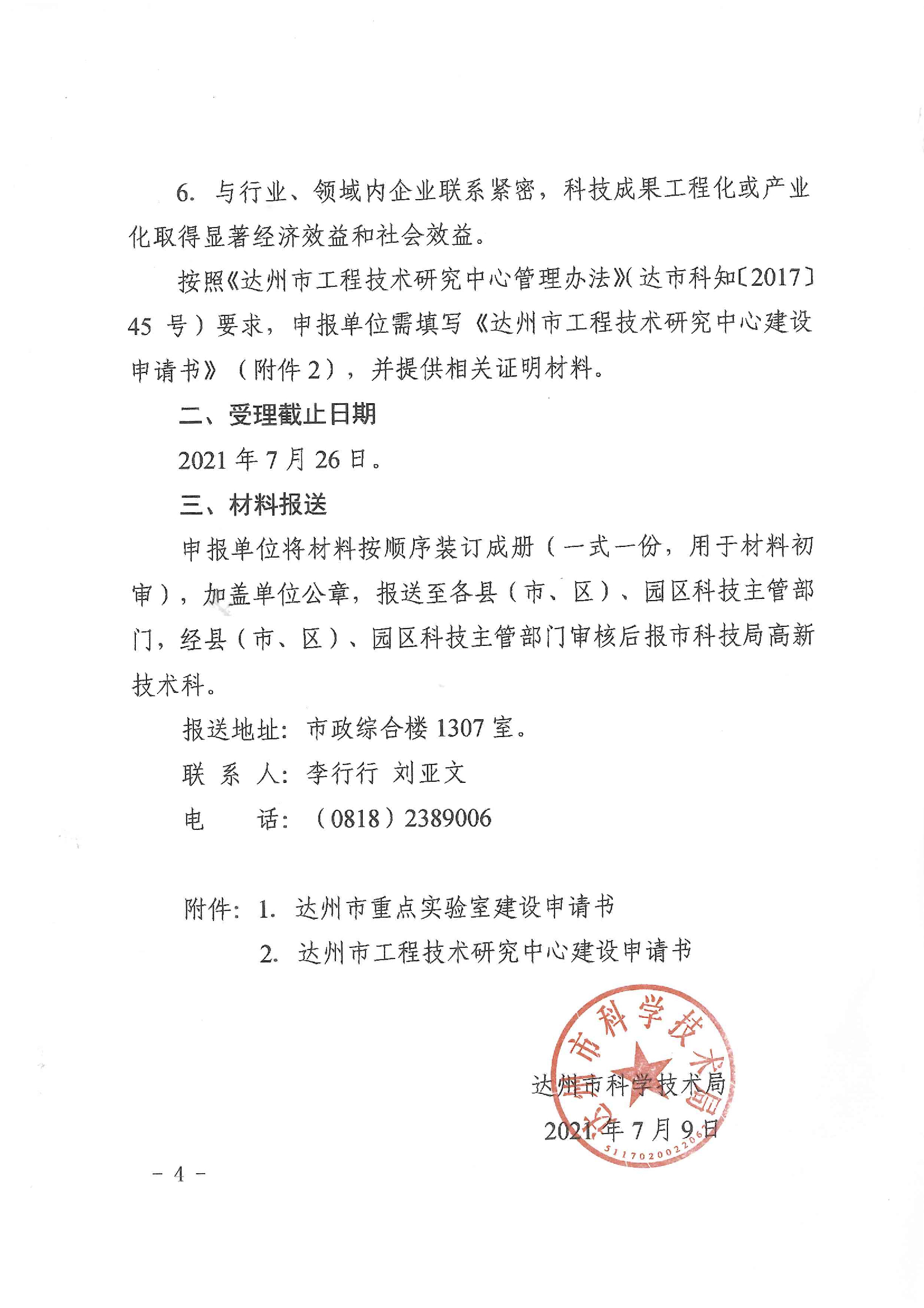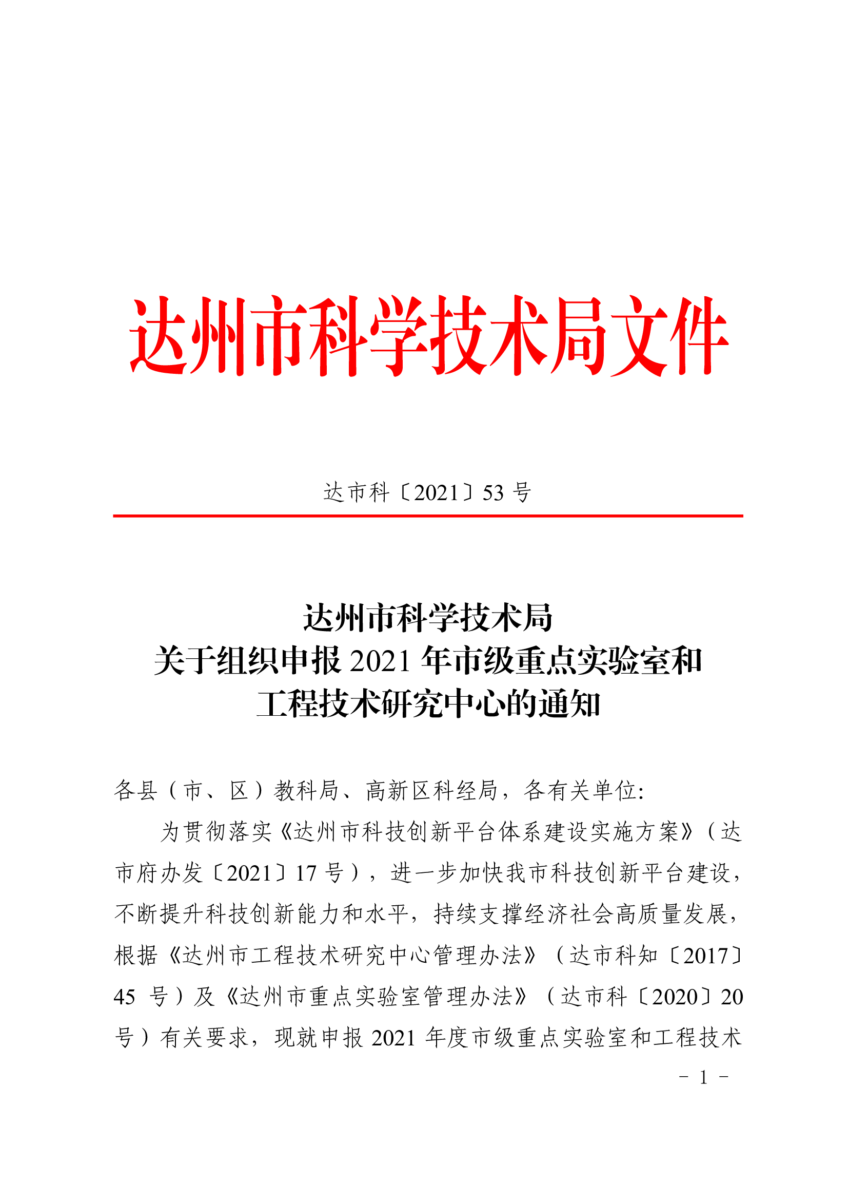 达州:关于组织申报2021年市级重点实验室和工程技术研究中心的通知