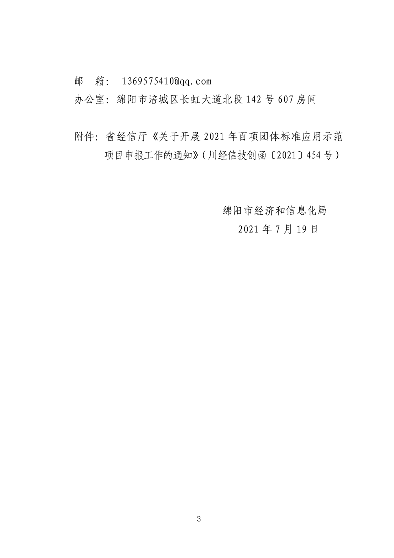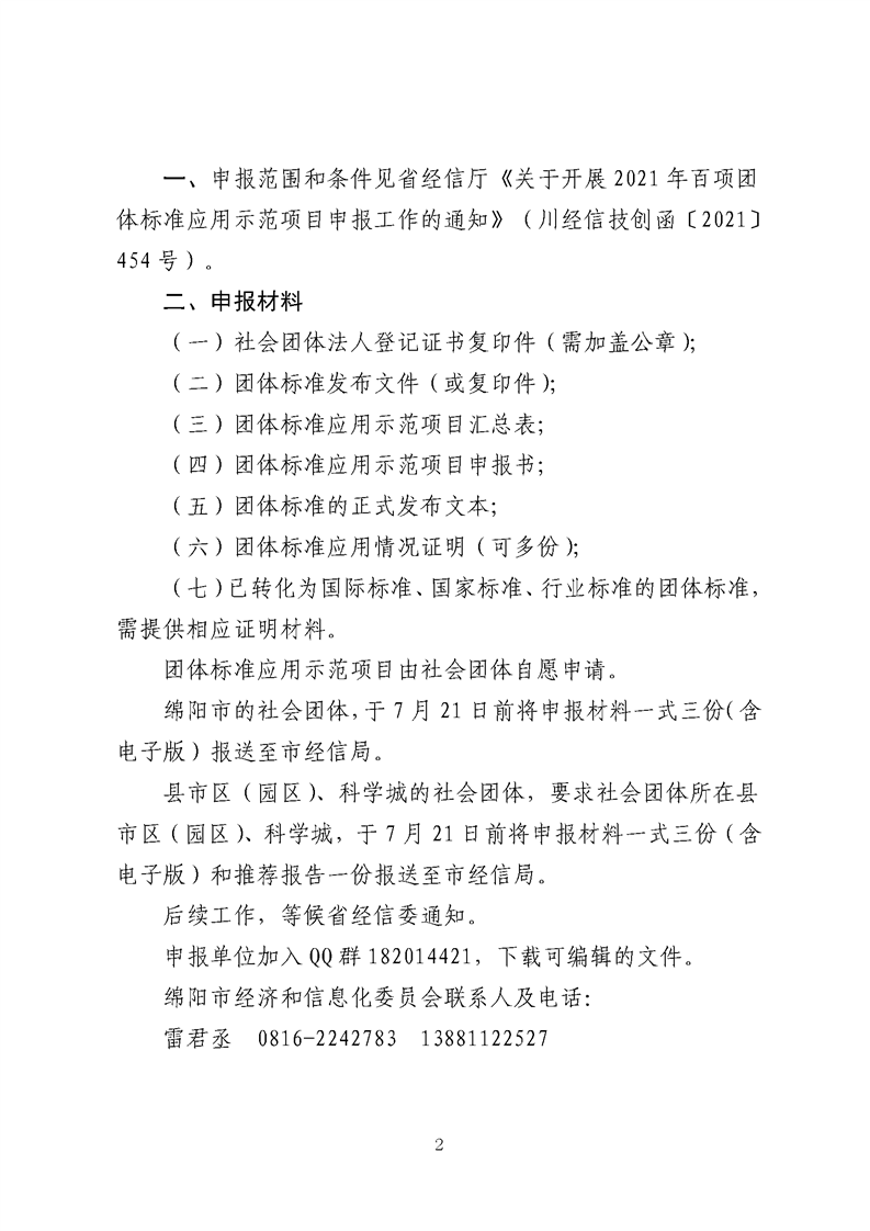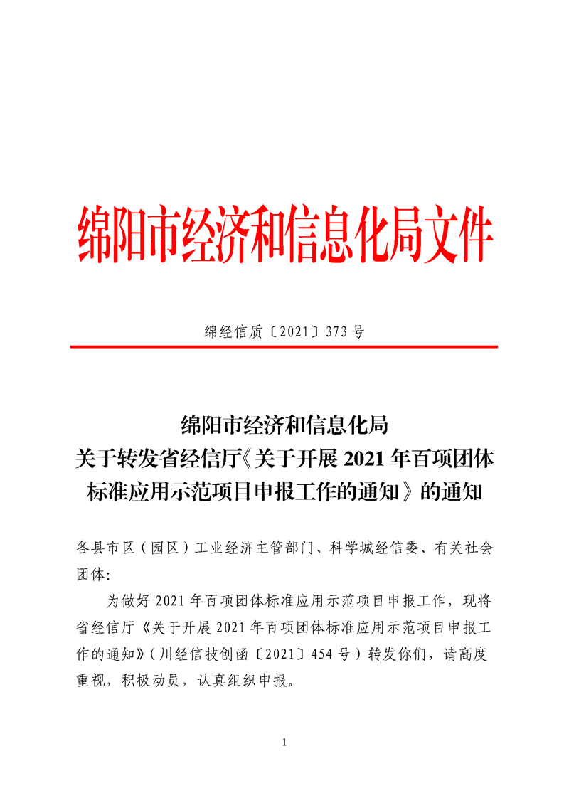 绵阳:关于转发省经信厅《关于开展2021年百项团体标准应用示范项目申报工作的通知》的通知