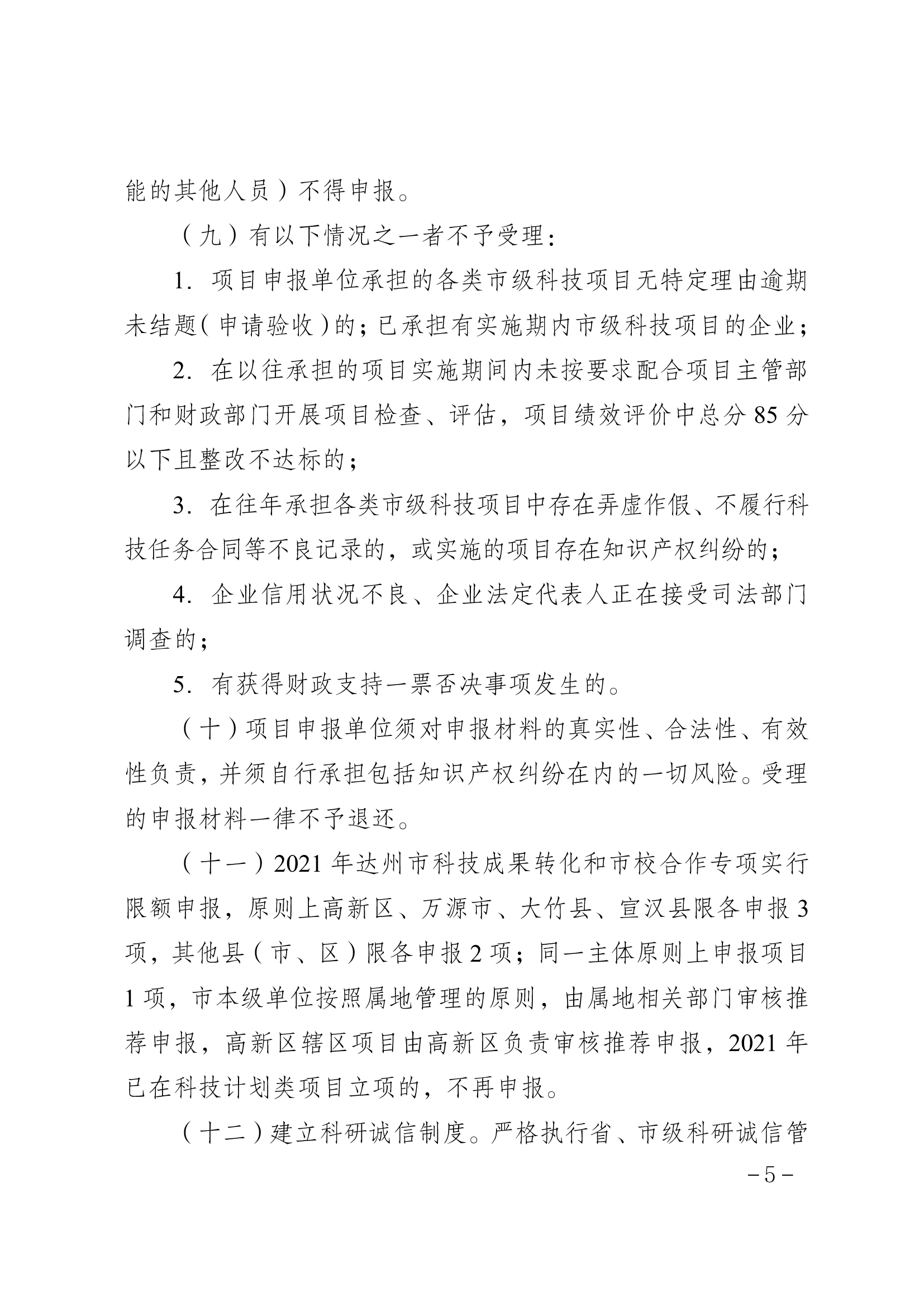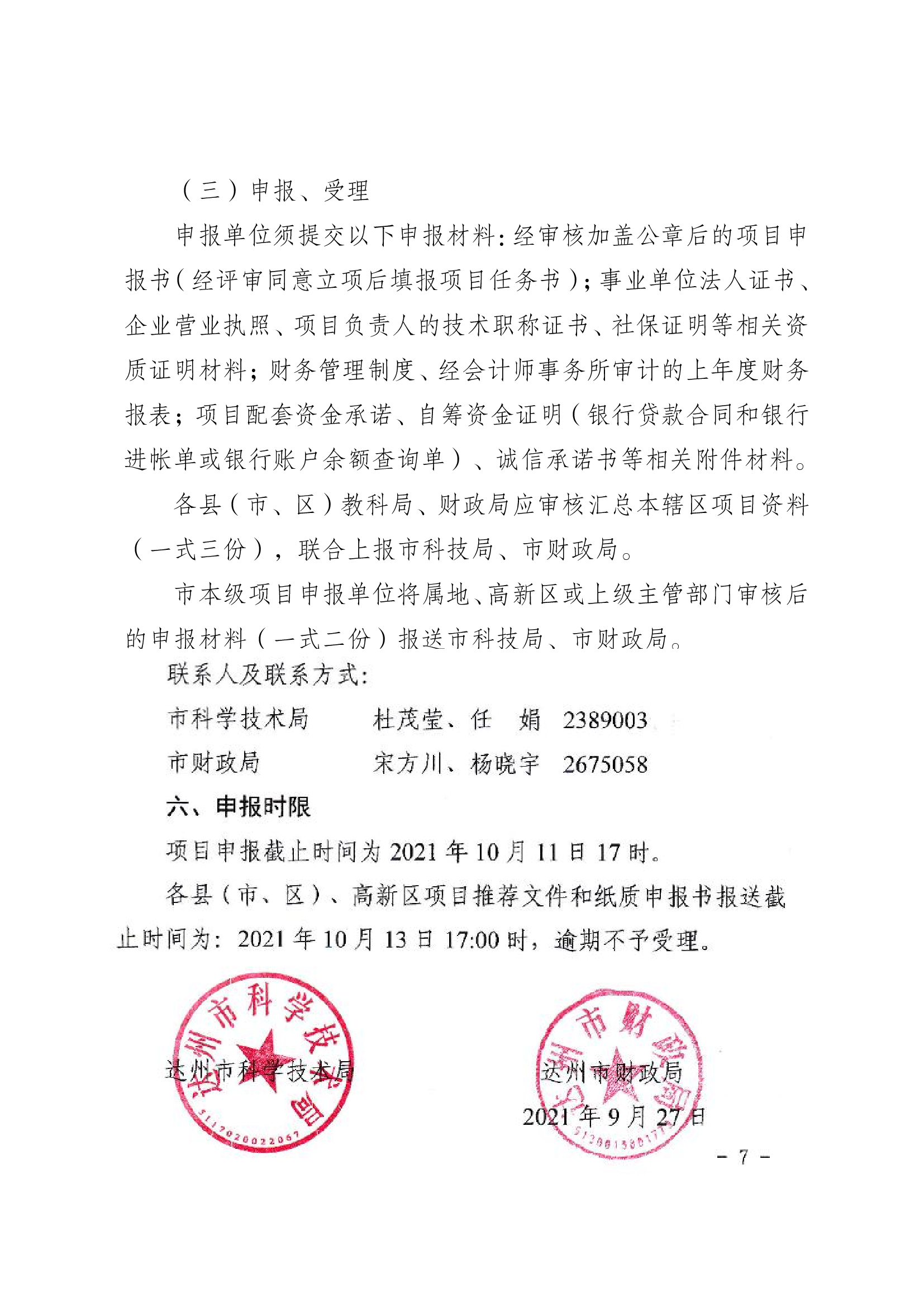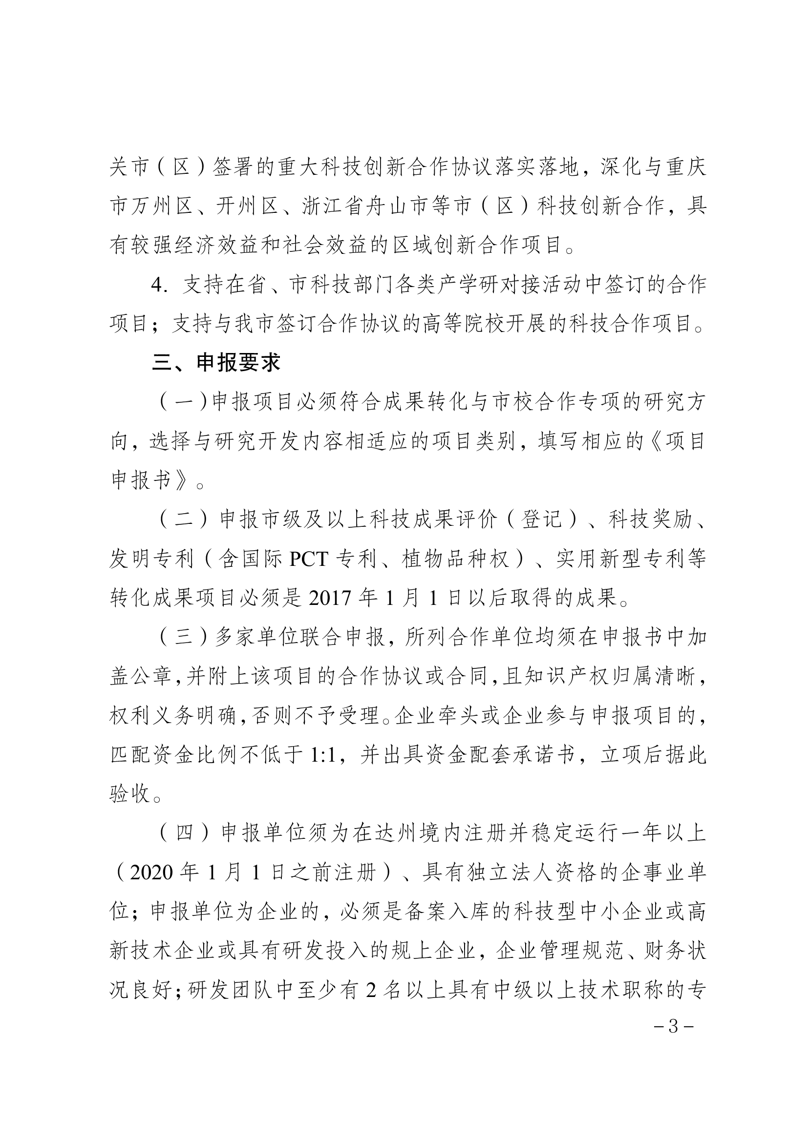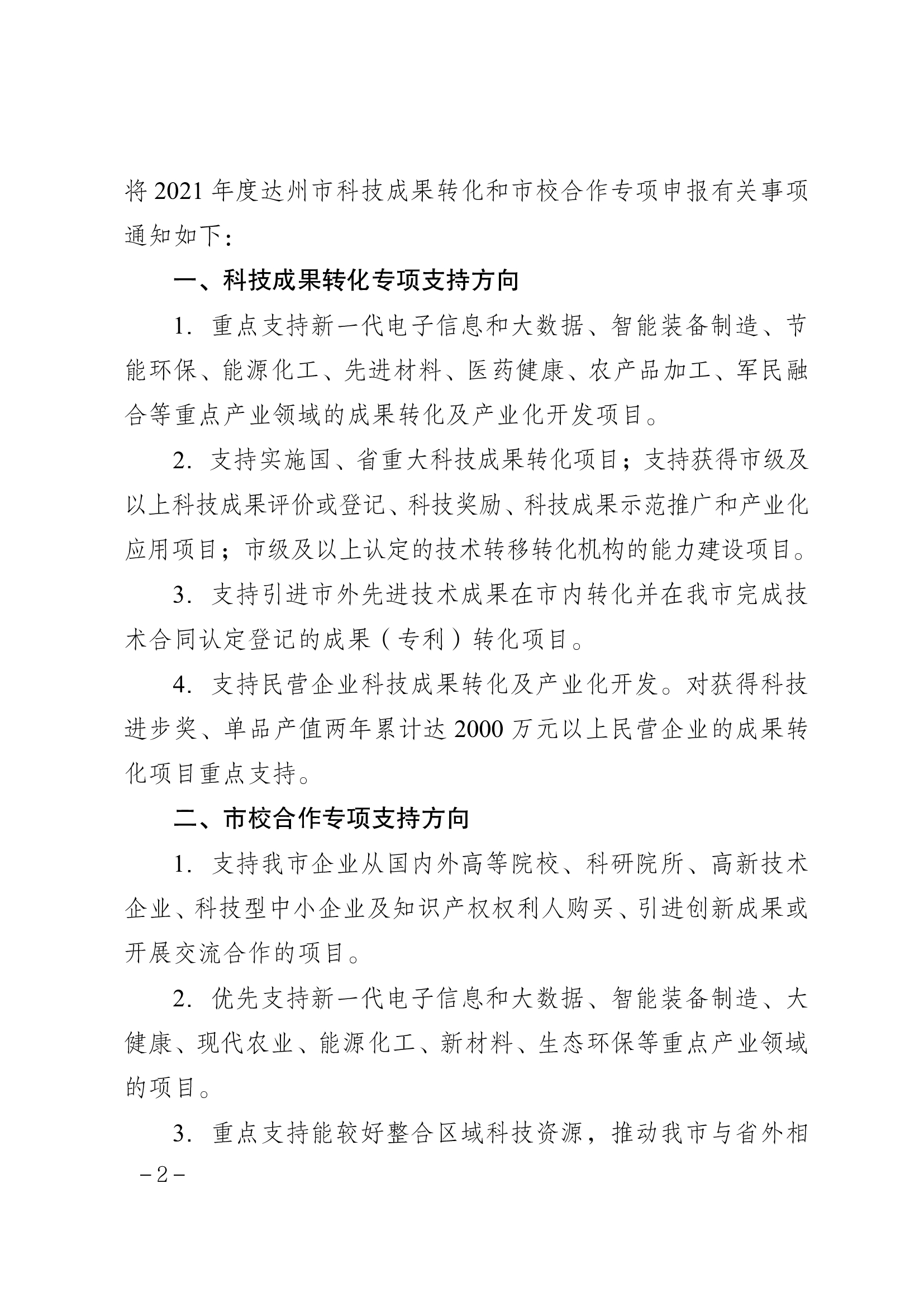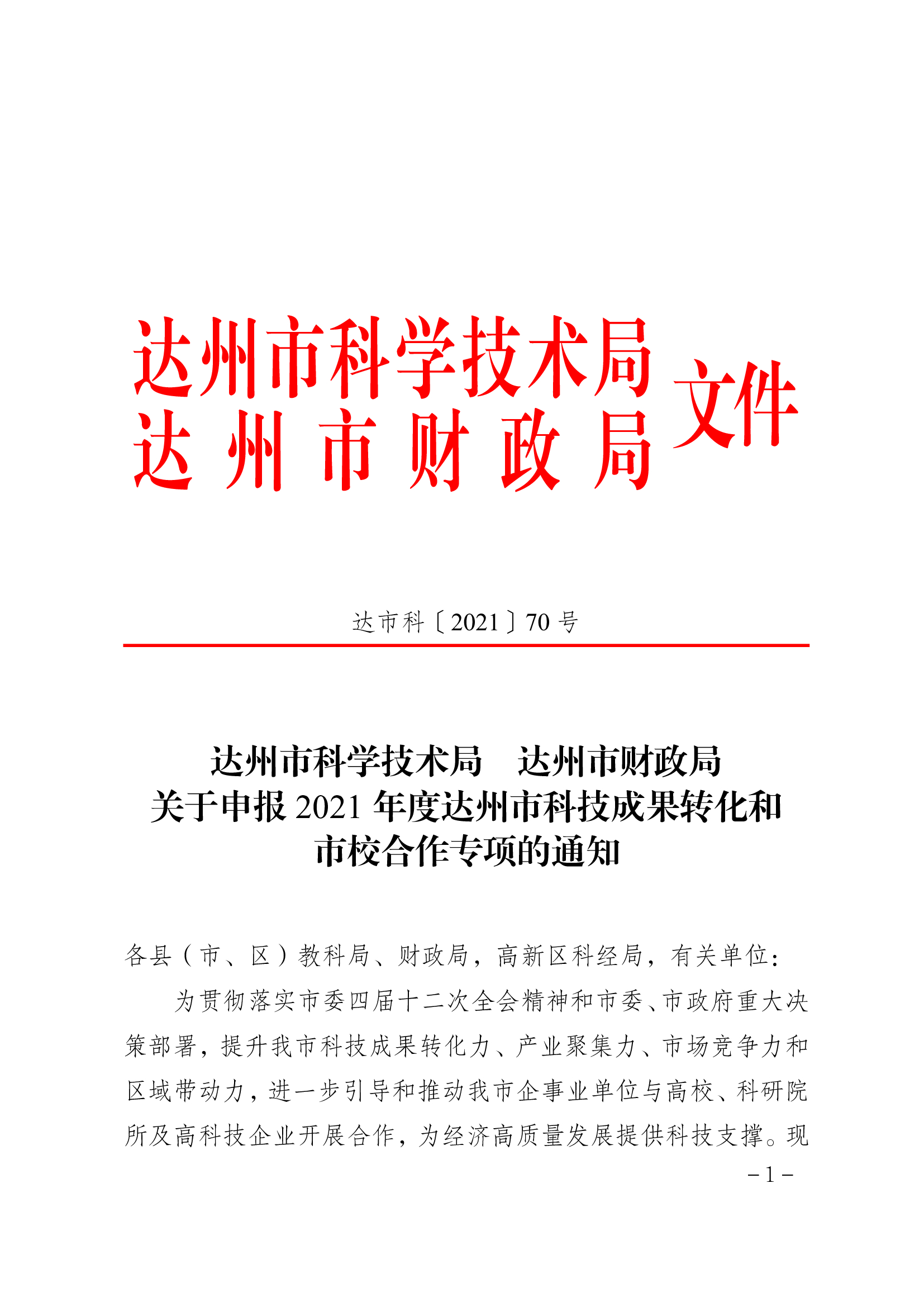 关于申报2021年度达州市科技成果转化和市校合作专项的通知
