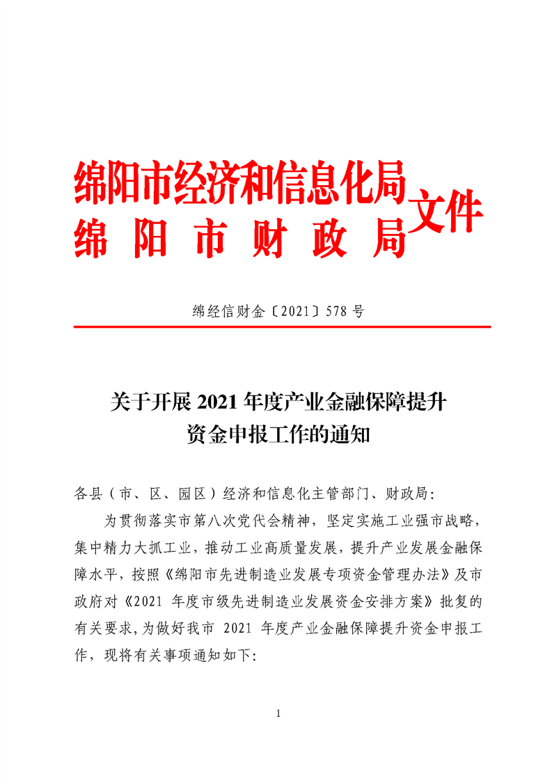 关于开展2021年度产业金融保障提升资金申报工作的通知