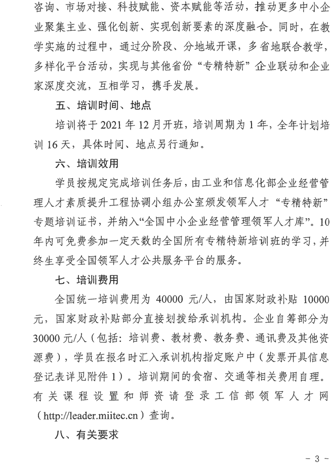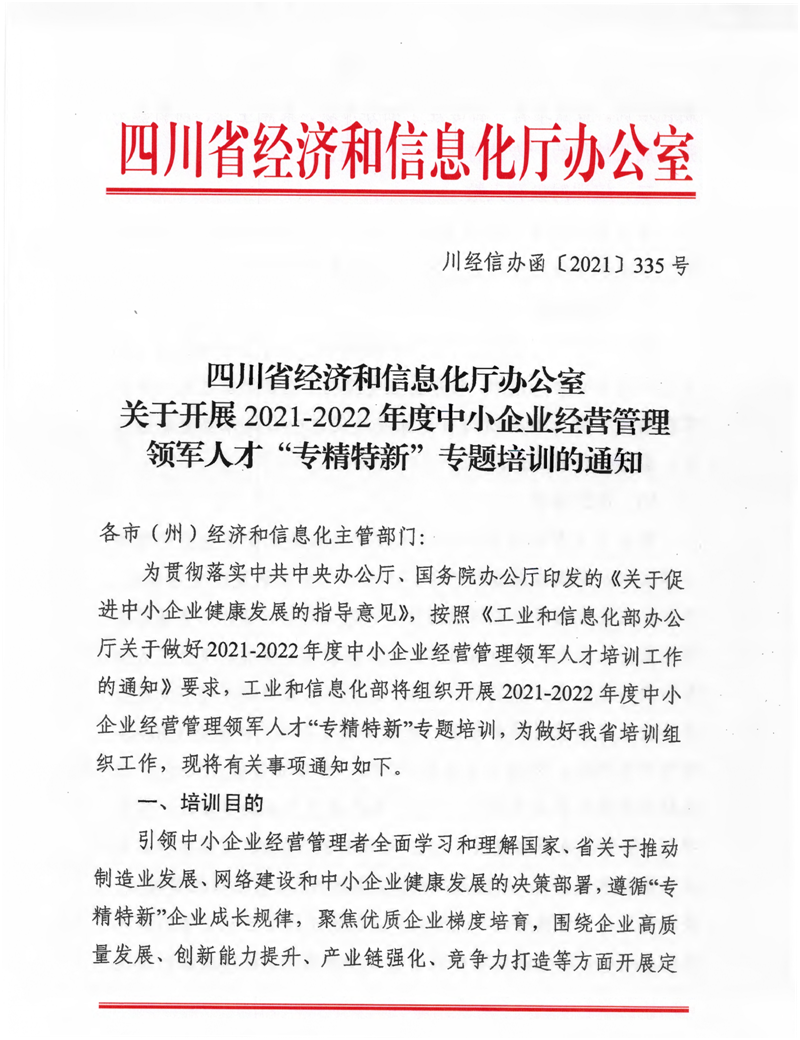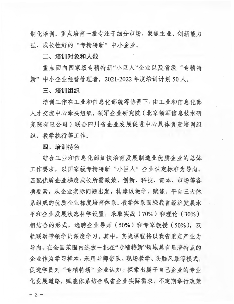 关于开展2021-2022年度中小企业经营管理领军人才“专精特新”专题培训的通知