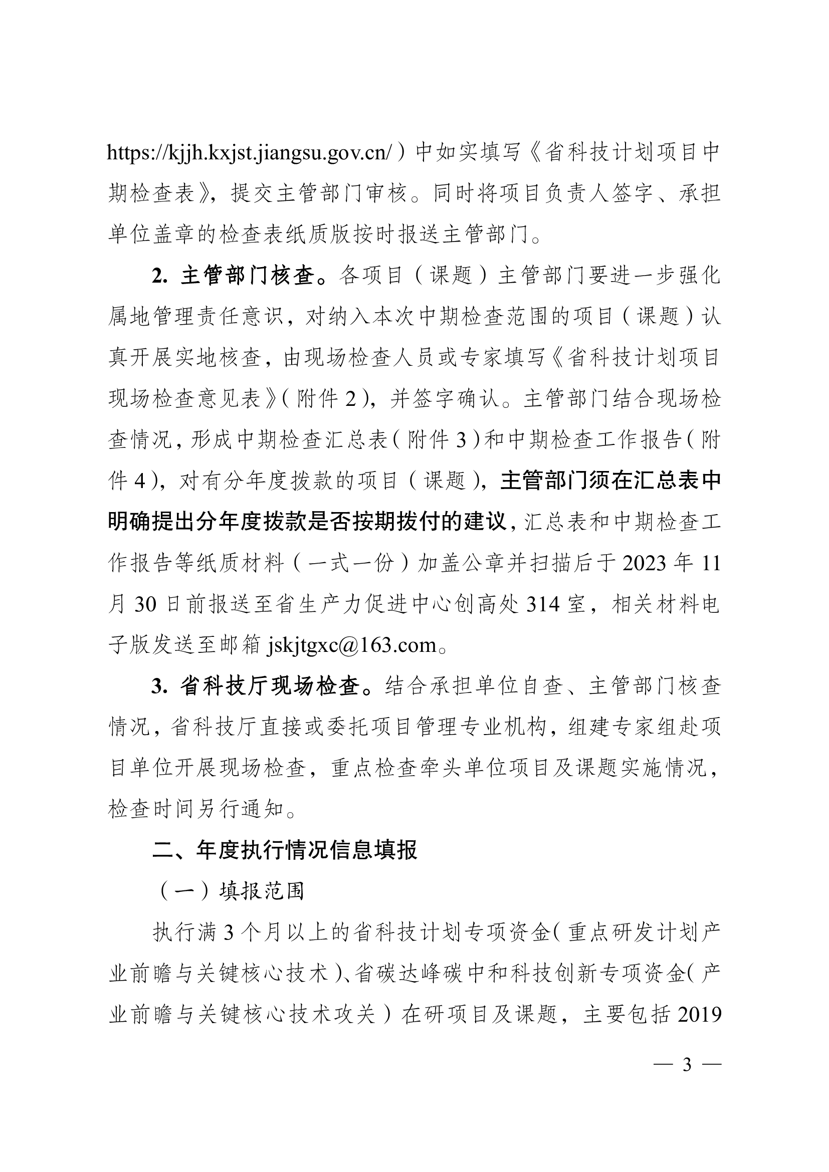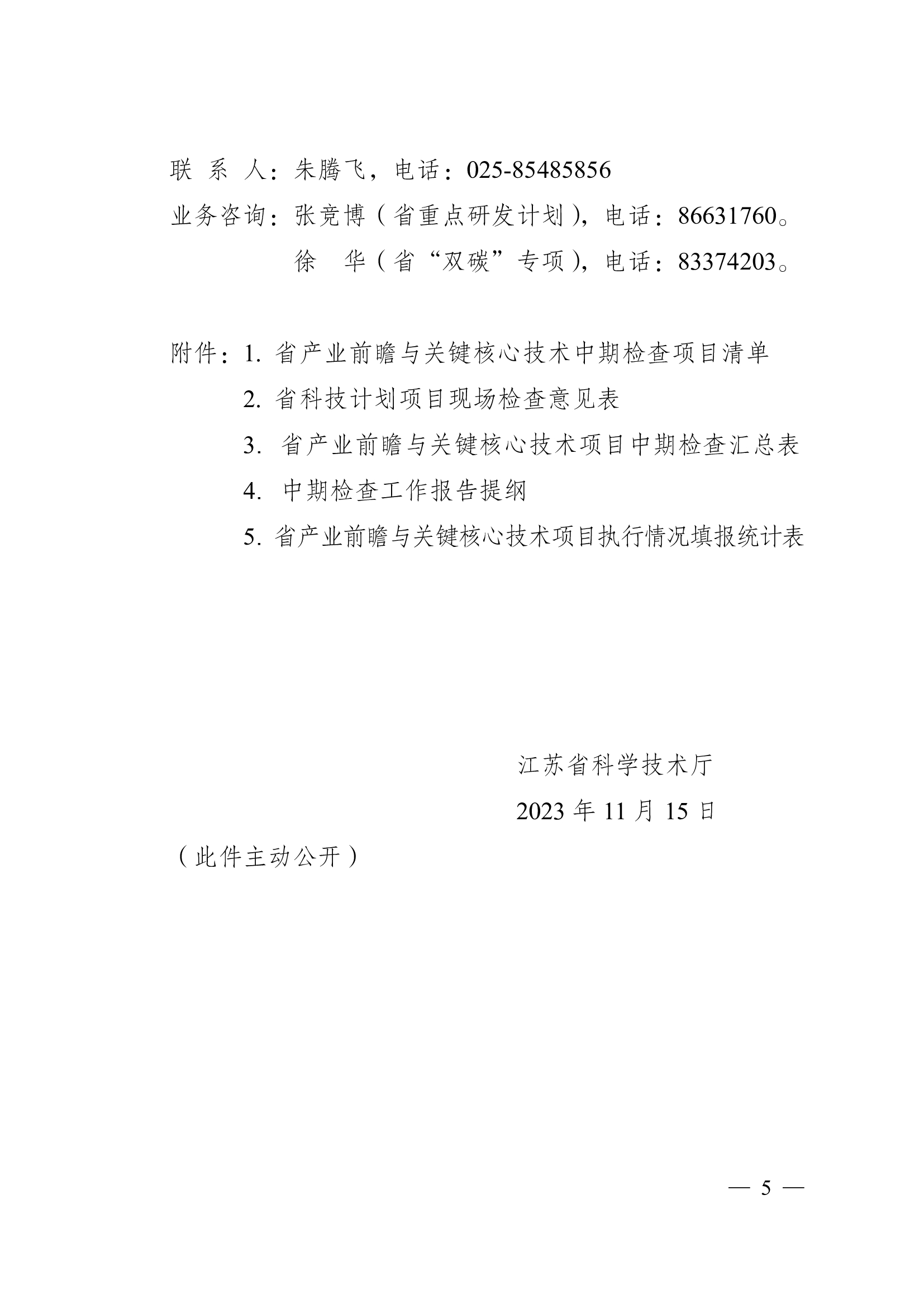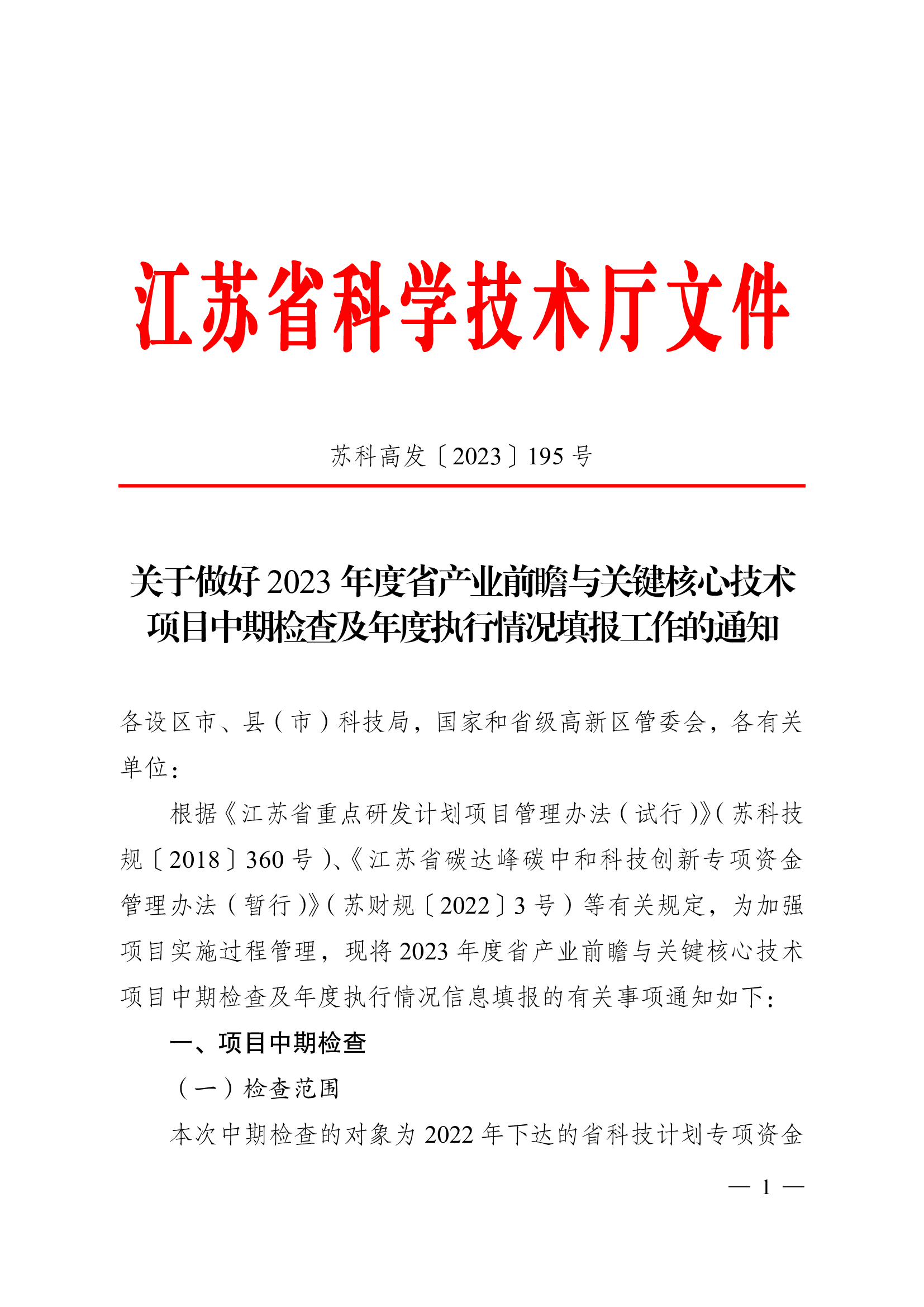 江苏省科学技术厅关于做好2023年度省产业前瞻与关键核心技术项目中期检查及年度执行情况填报工作的通知