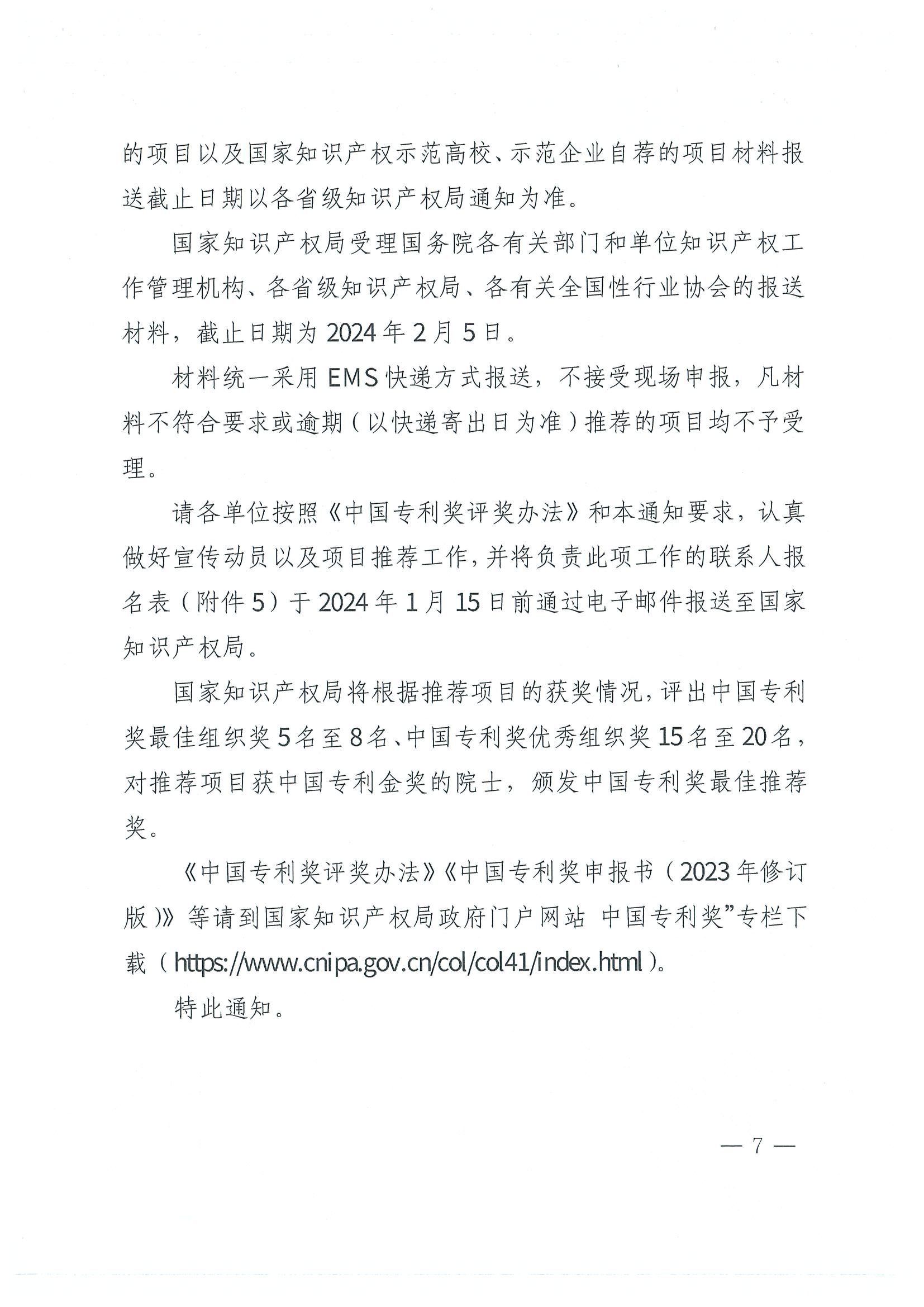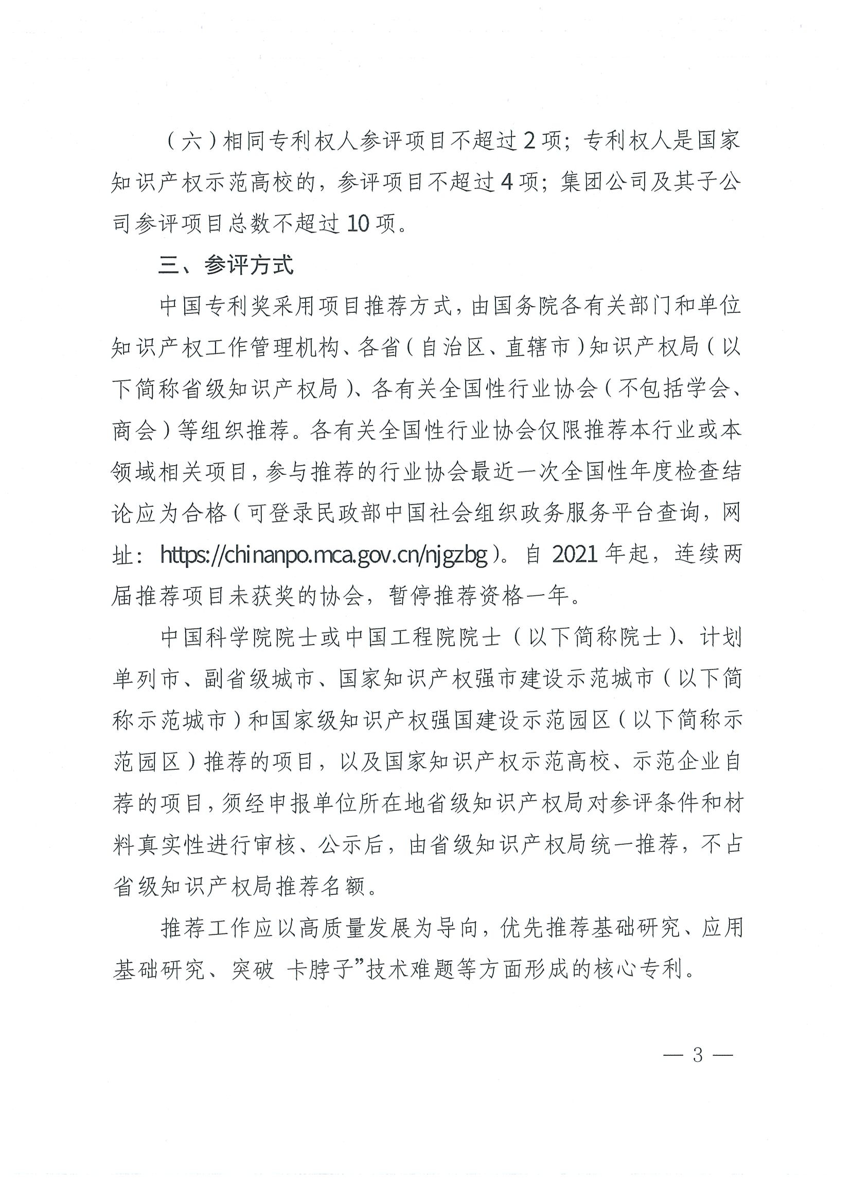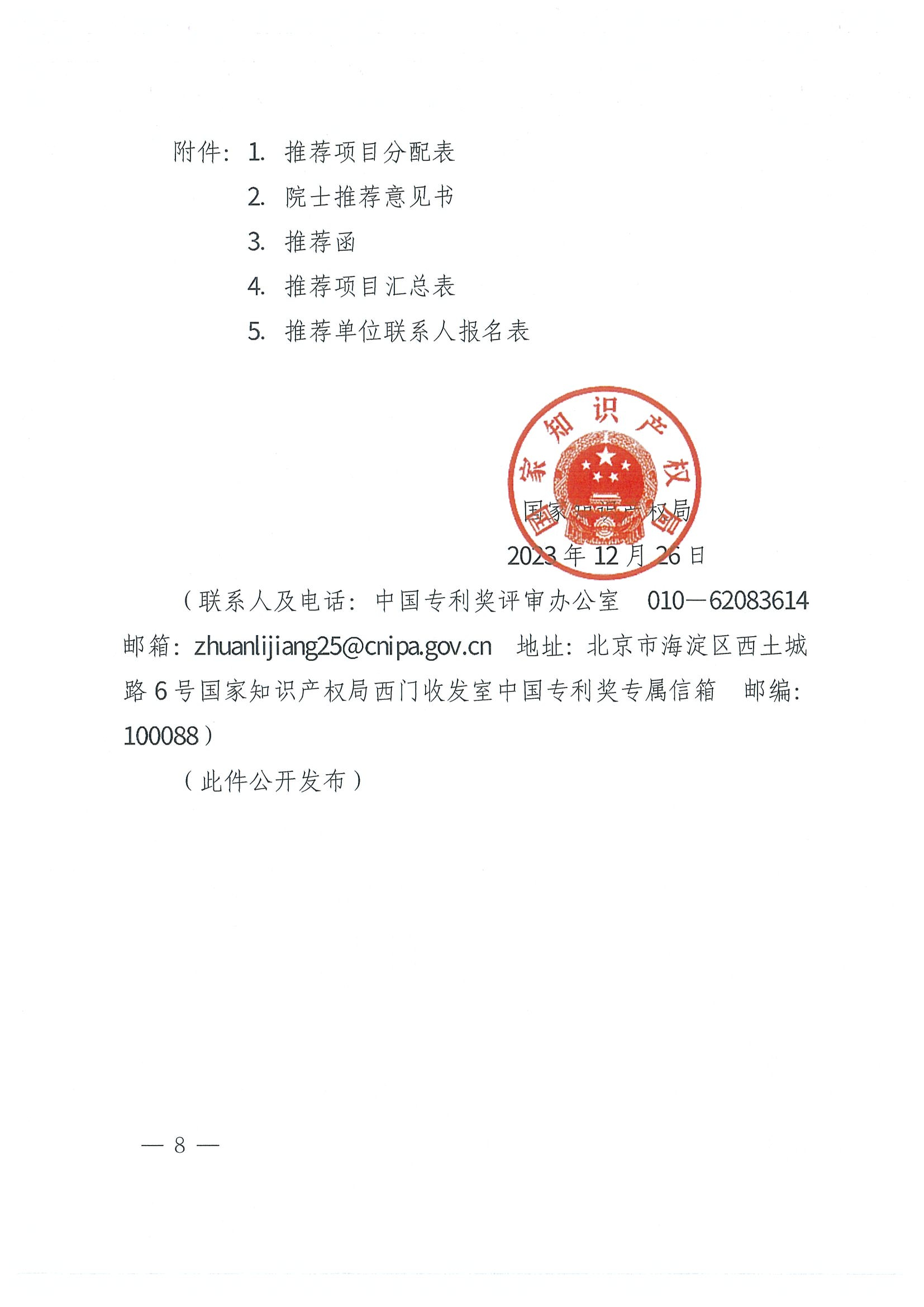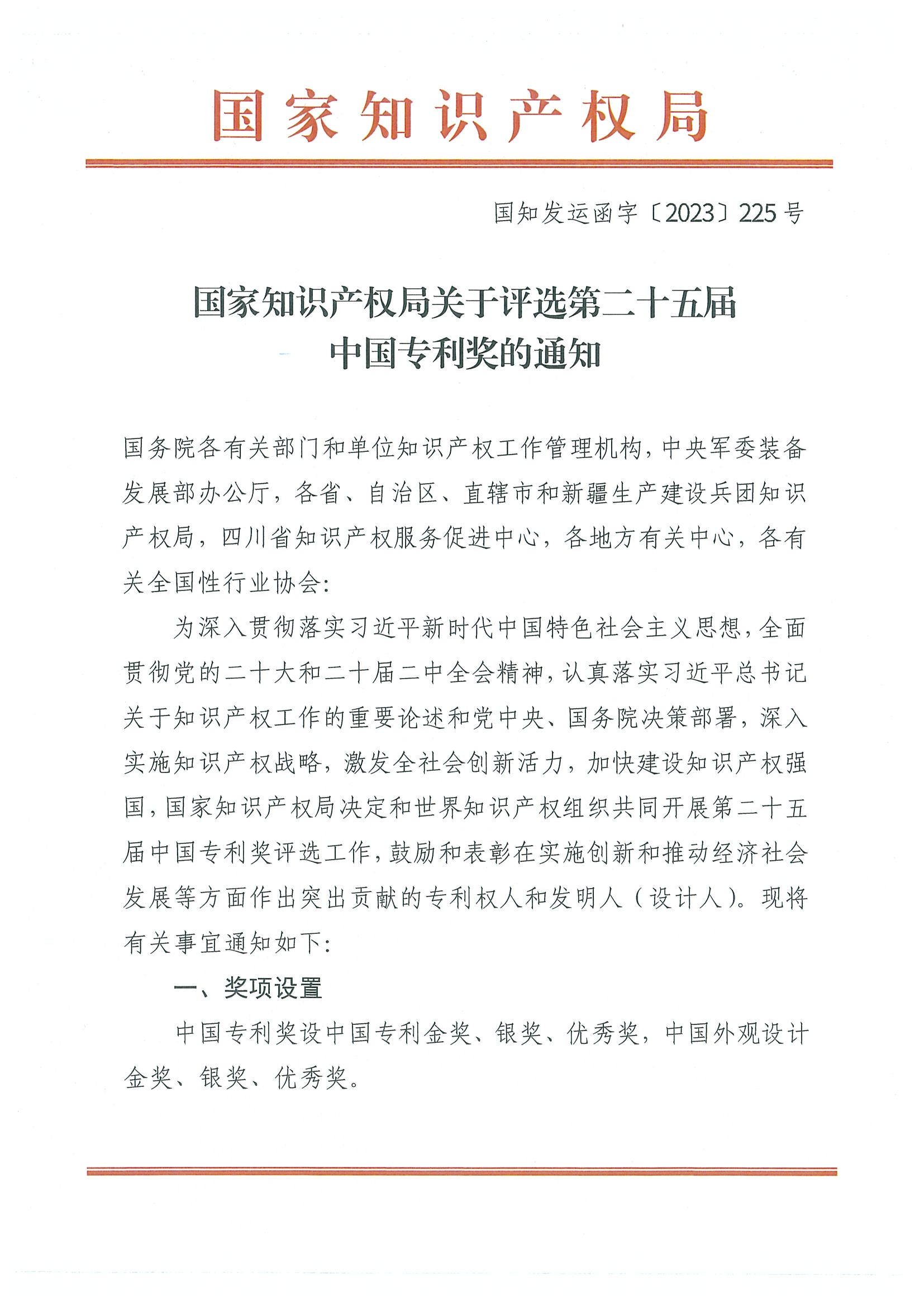 国家知识产权局关于评选第二十五届中国专利奖的通知