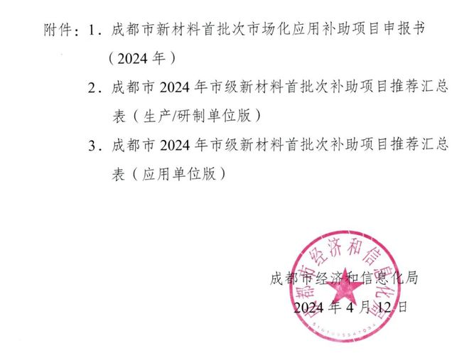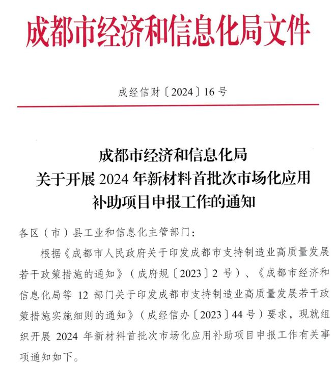 成都市经济和信息化局关于开展2024年新材料首批次市场化应用补助项目申报工作的通知