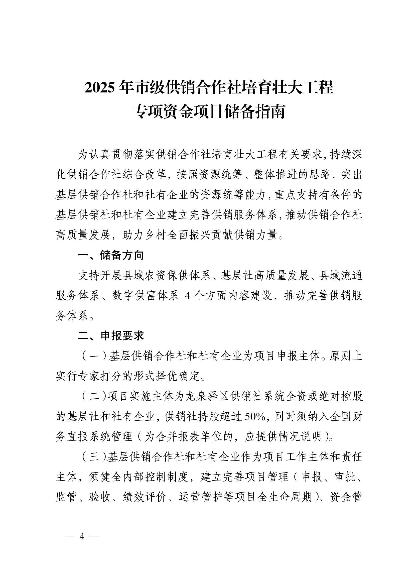 成都市龙泉驿区:《2025年市级供销合作社培育壮大工程专项资金项目储备指南》