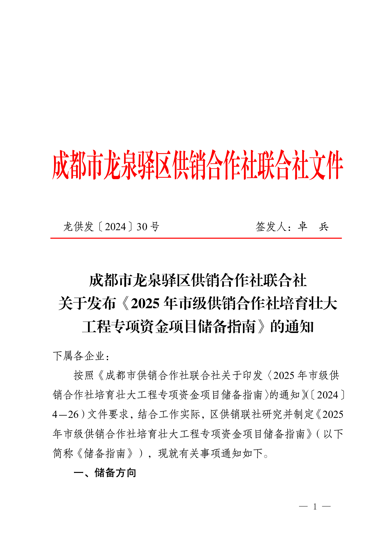 成都市龙泉驿区:关于发布《2025年市级供销合作社培育壮大工程专项资金项目储备指南》的通知