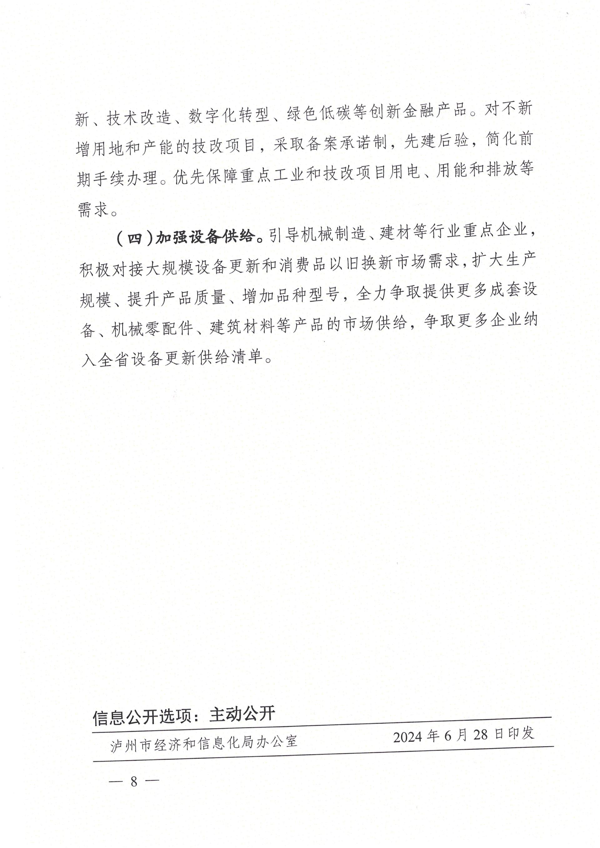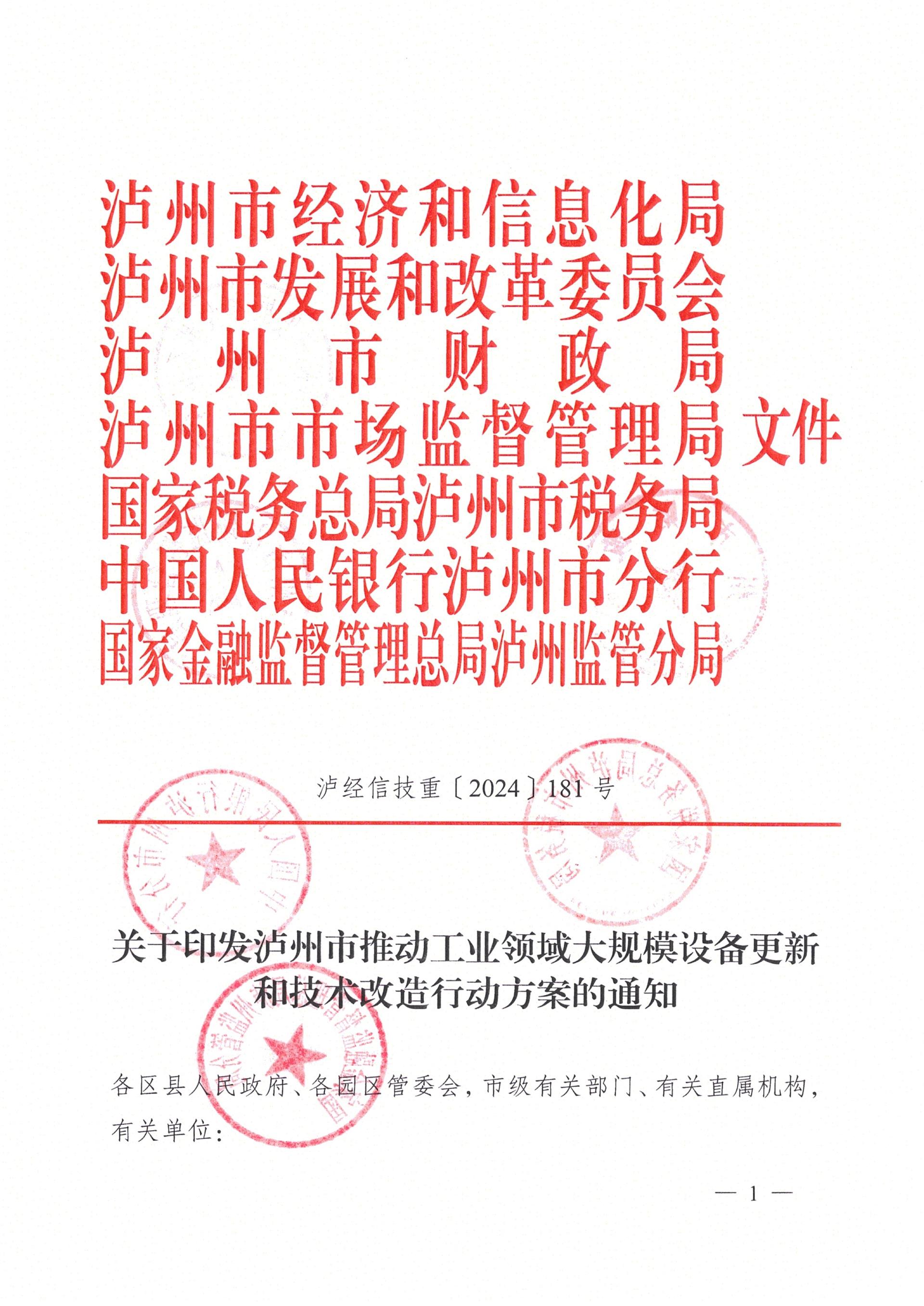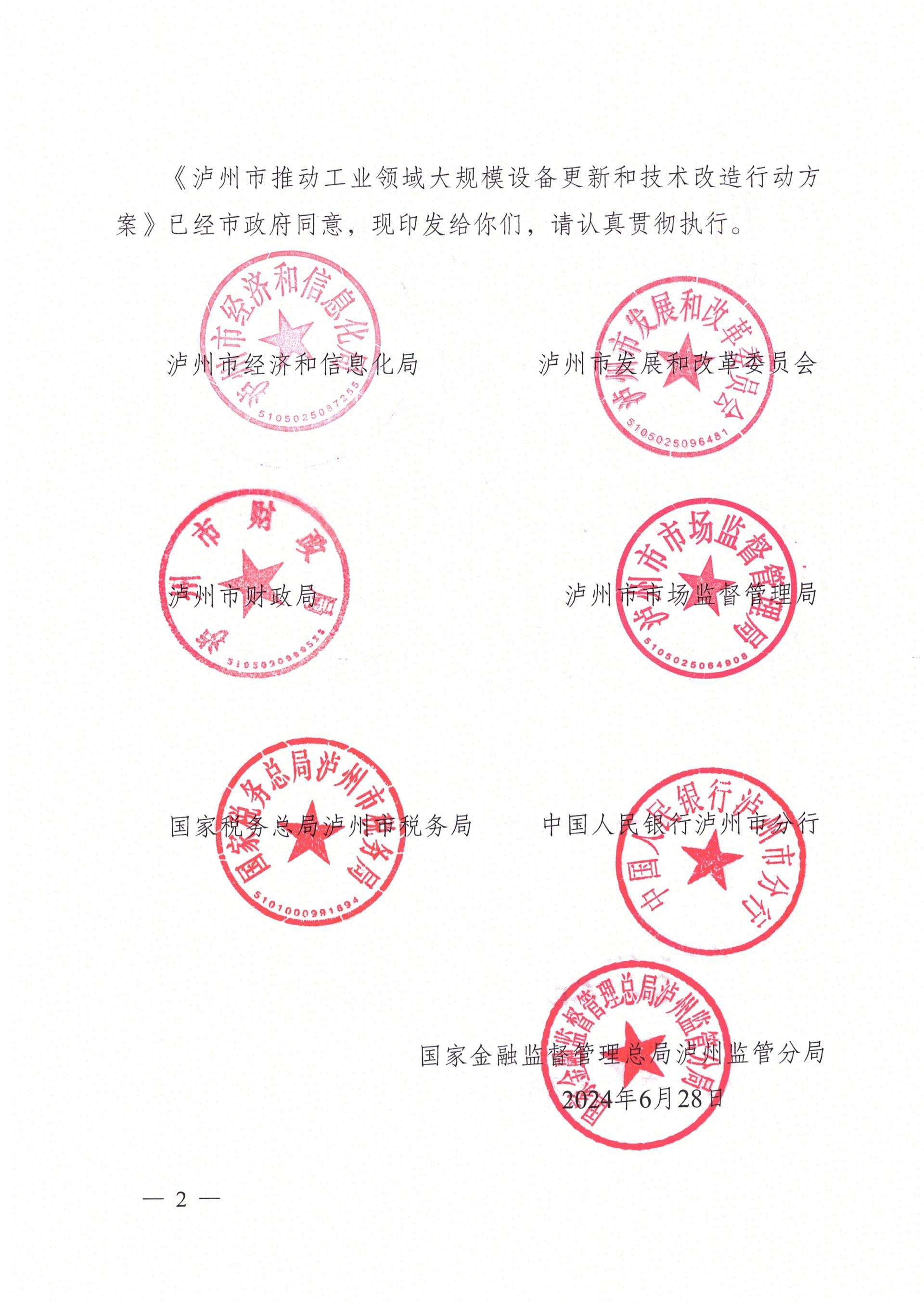 关于印发泸州市推动工业领域大规模设备更新和技术改造行动方案的通知