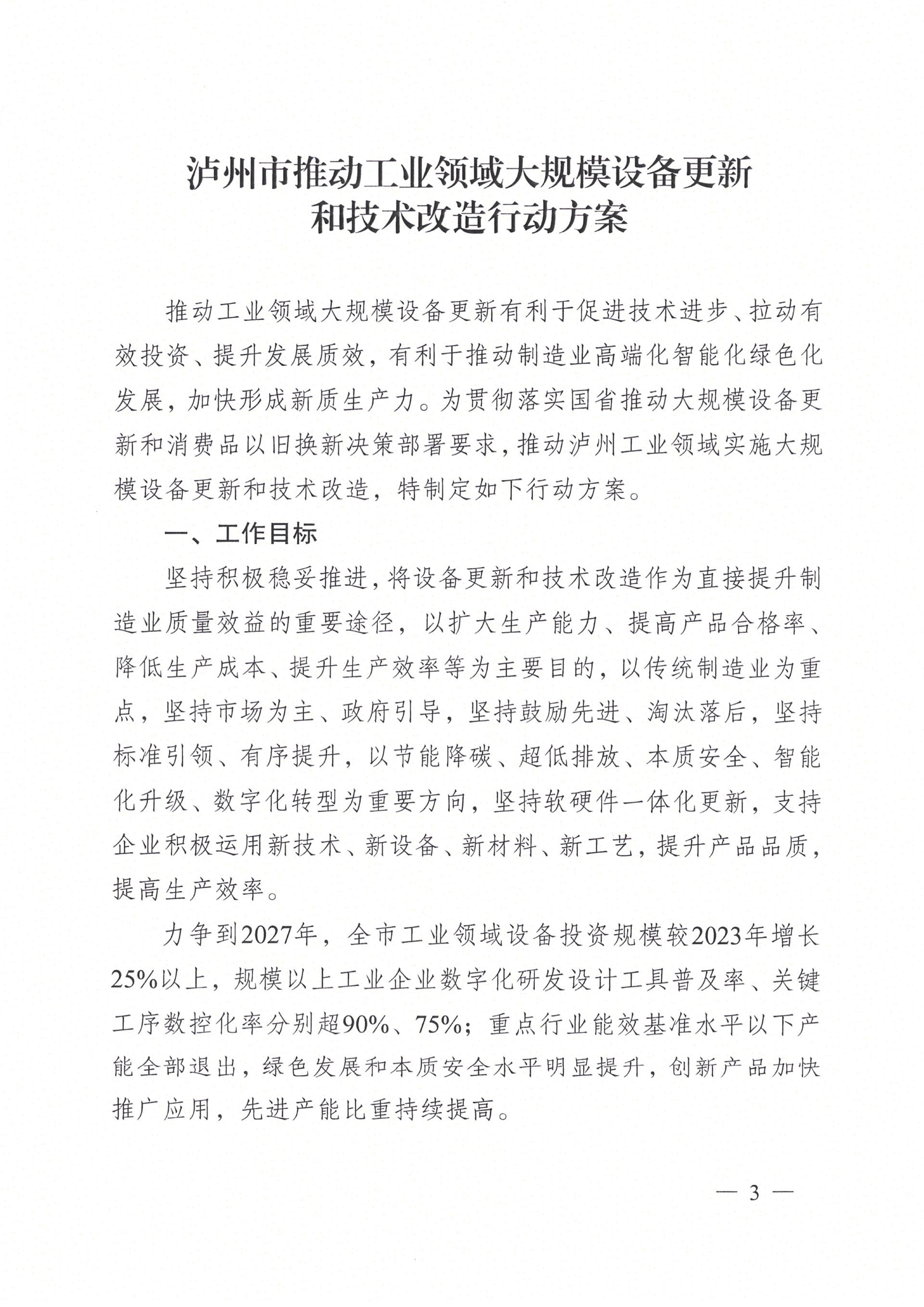 泸州市推动工业领域大规模设备更新和技术改造行动方案