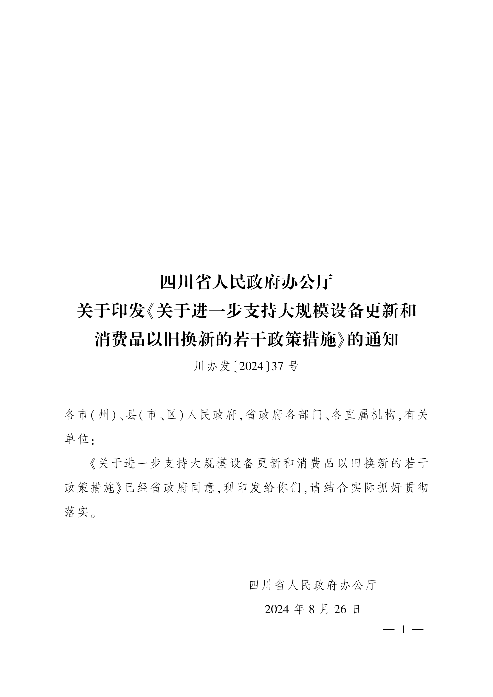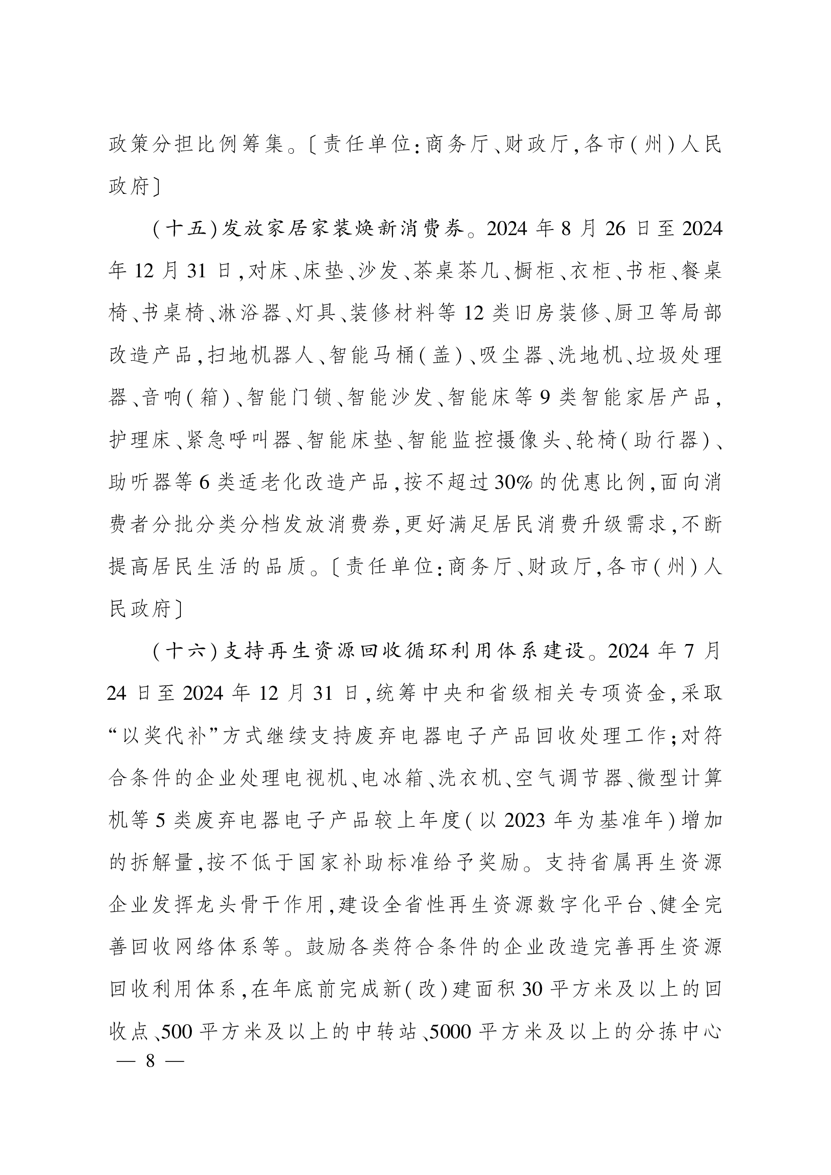 《关于进一步支持大规模设备更新和消费品以旧换新的若干政策措施》已经省政府同意,现印发给你们,请结合实际抓好贯彻落实。