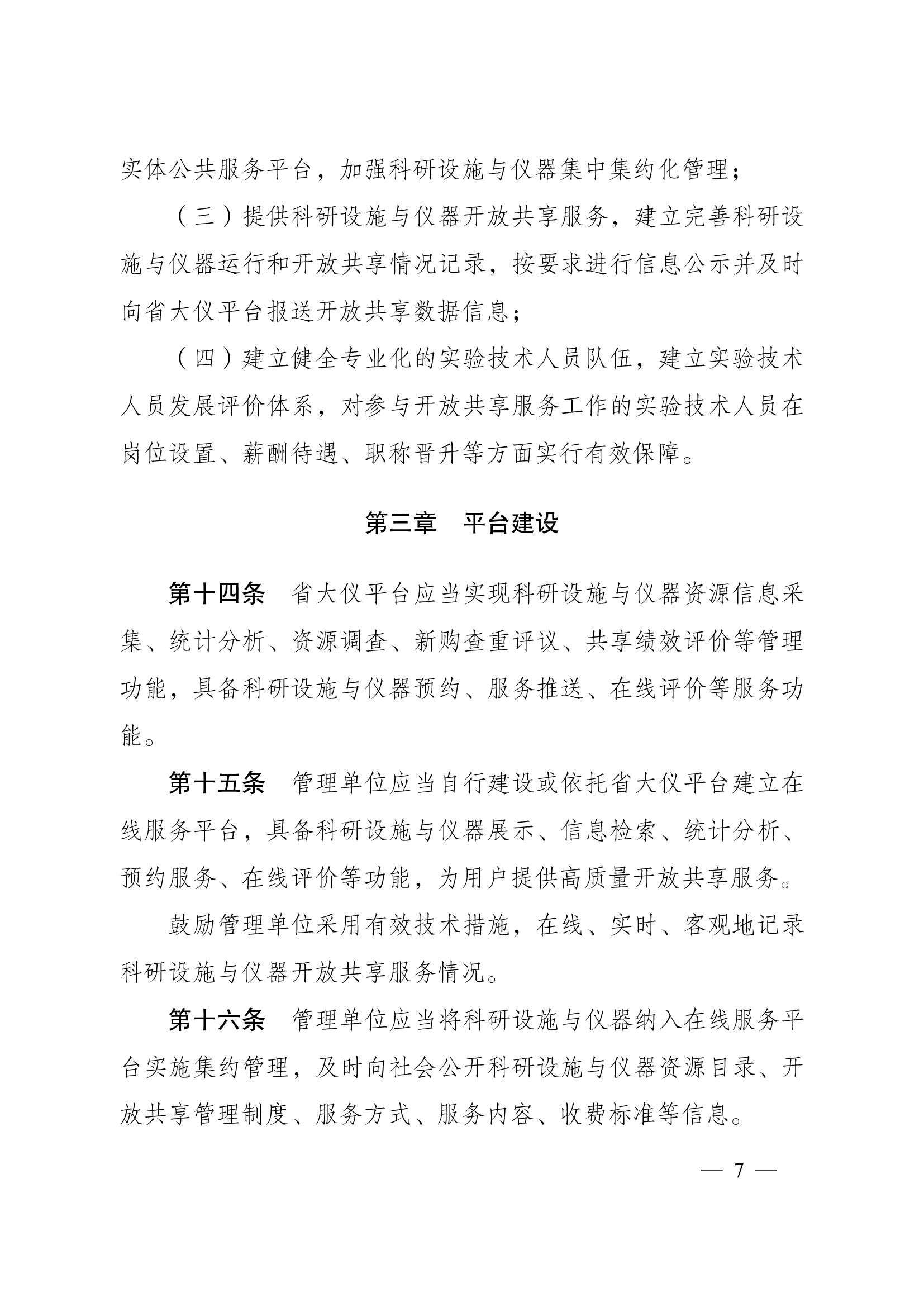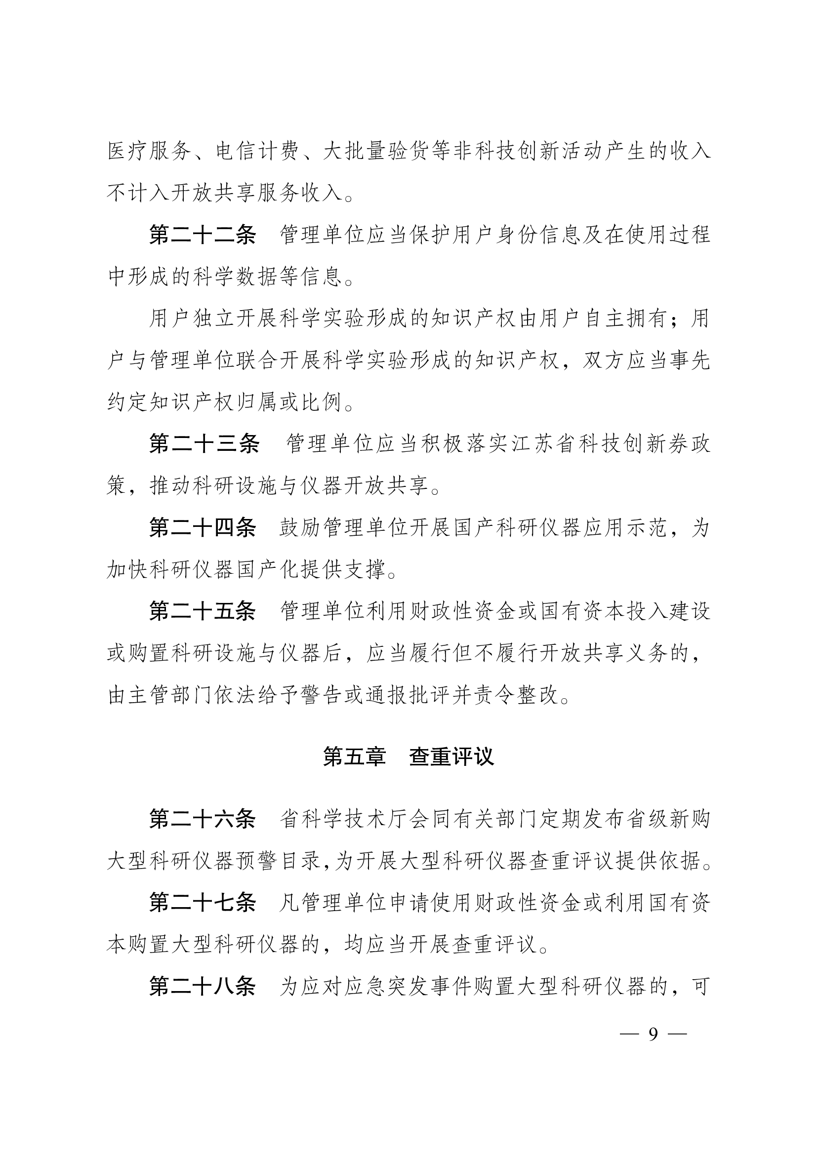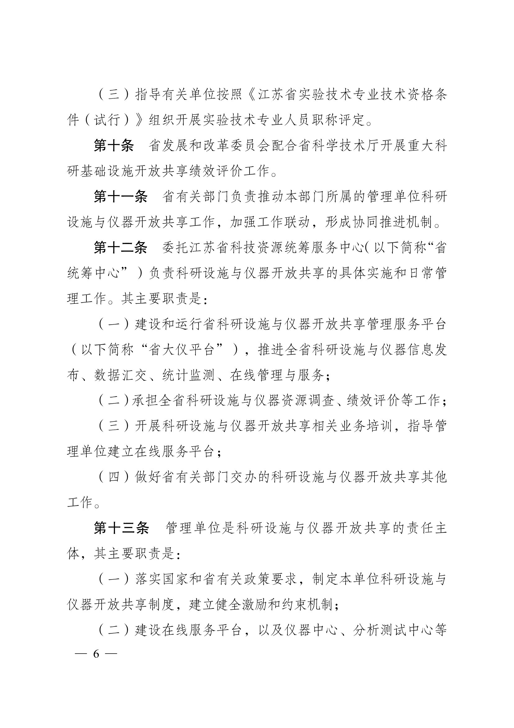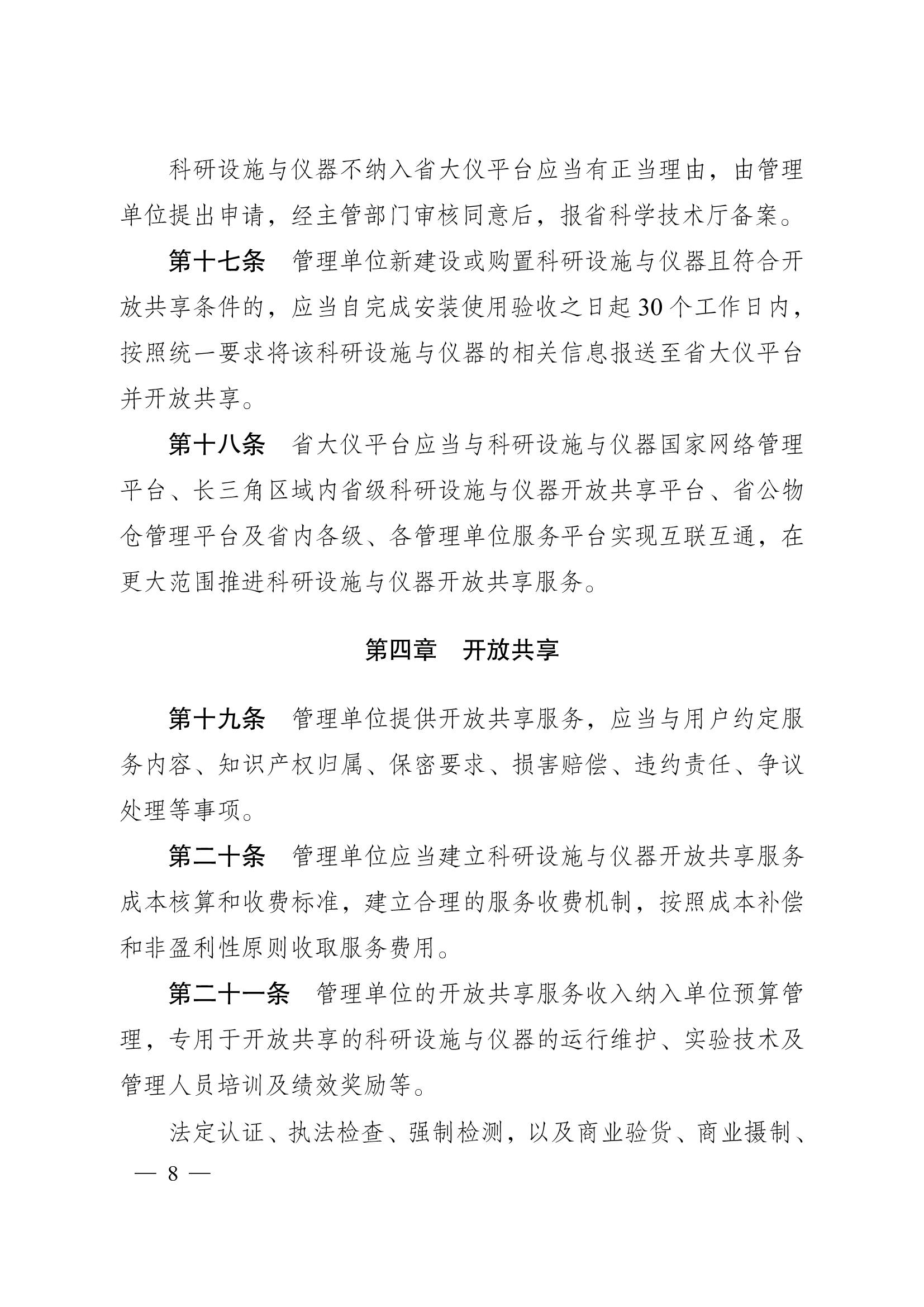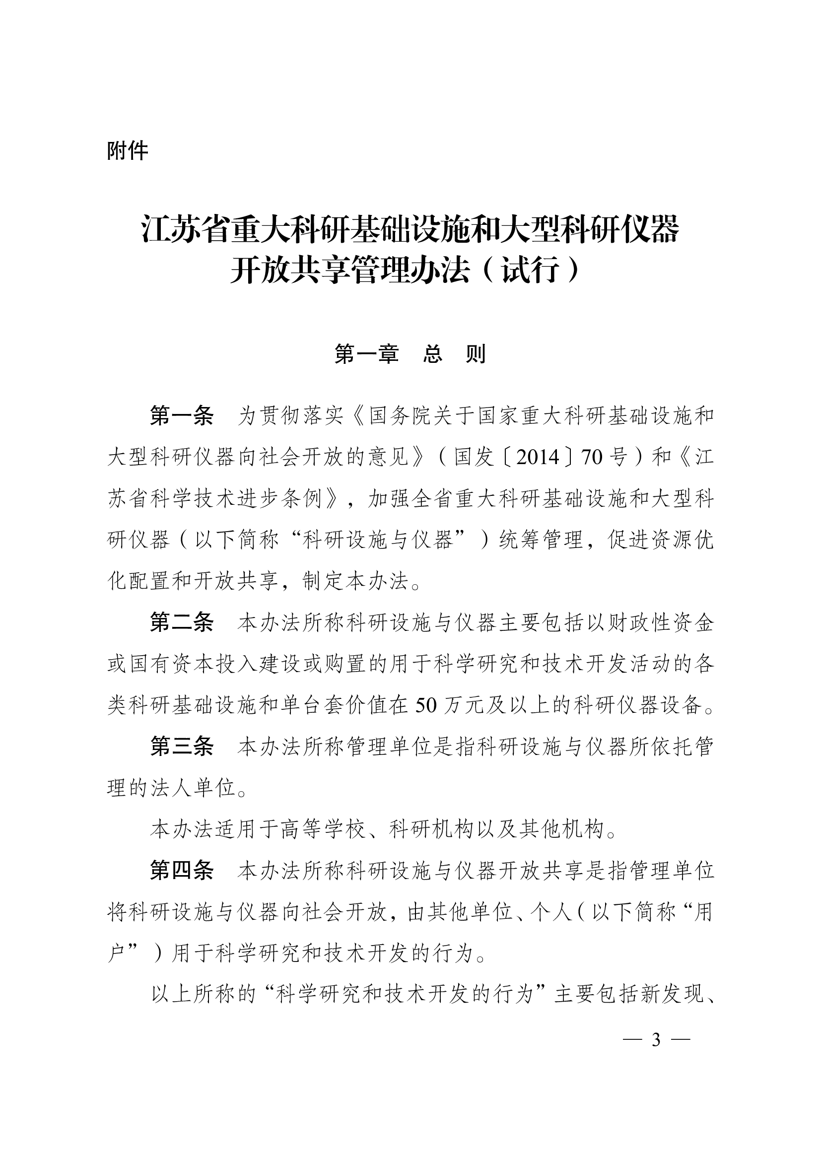 《江苏省重大科研基础设施和大型科研仪器开放共享管理办法(试行)》