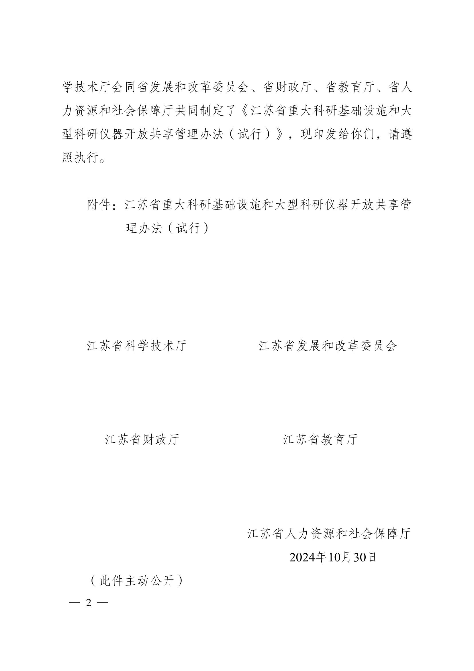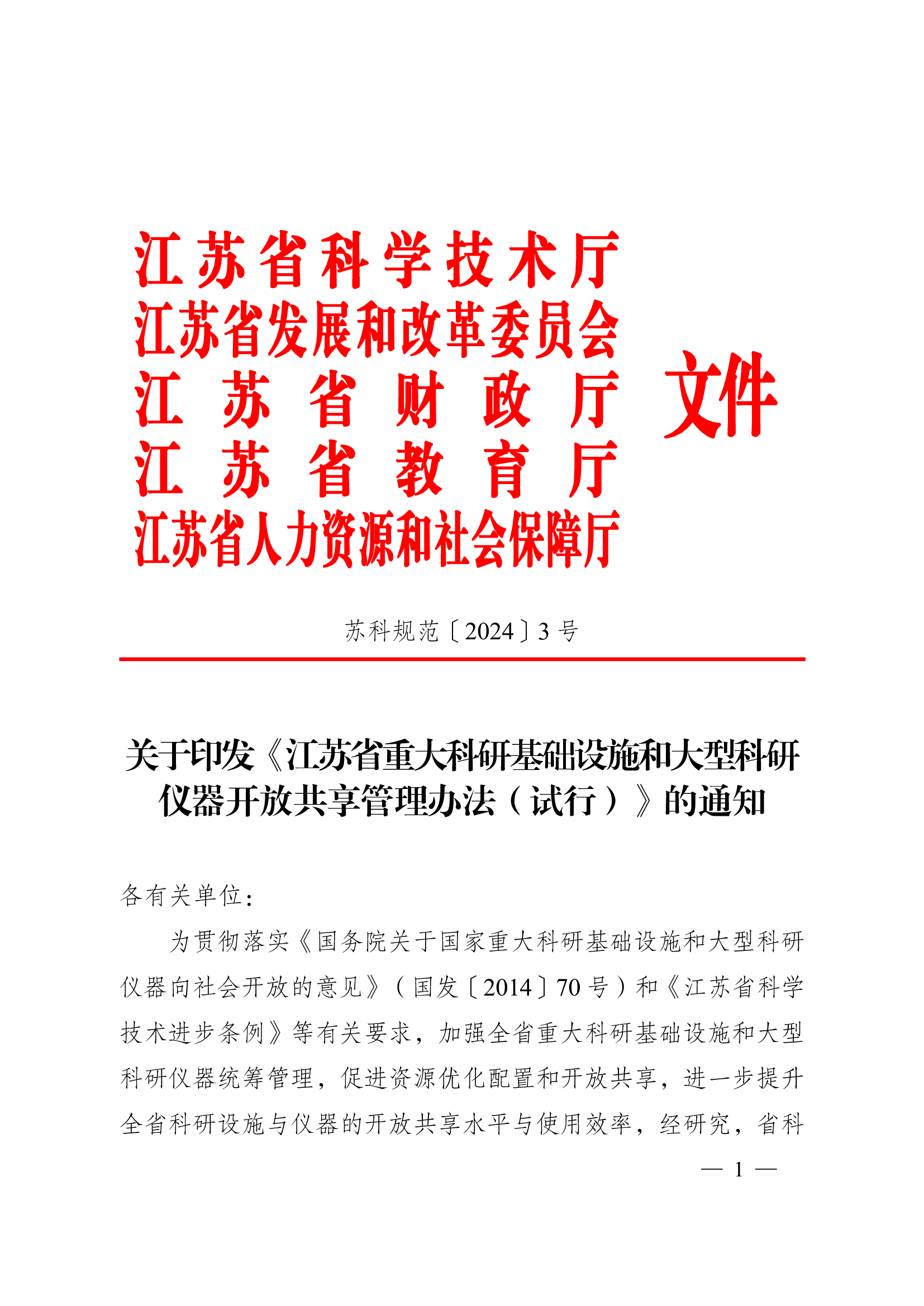 关于印发《江苏省重大科研基础设施和大型科研仪器开放共享管理办法(试行)》的通知