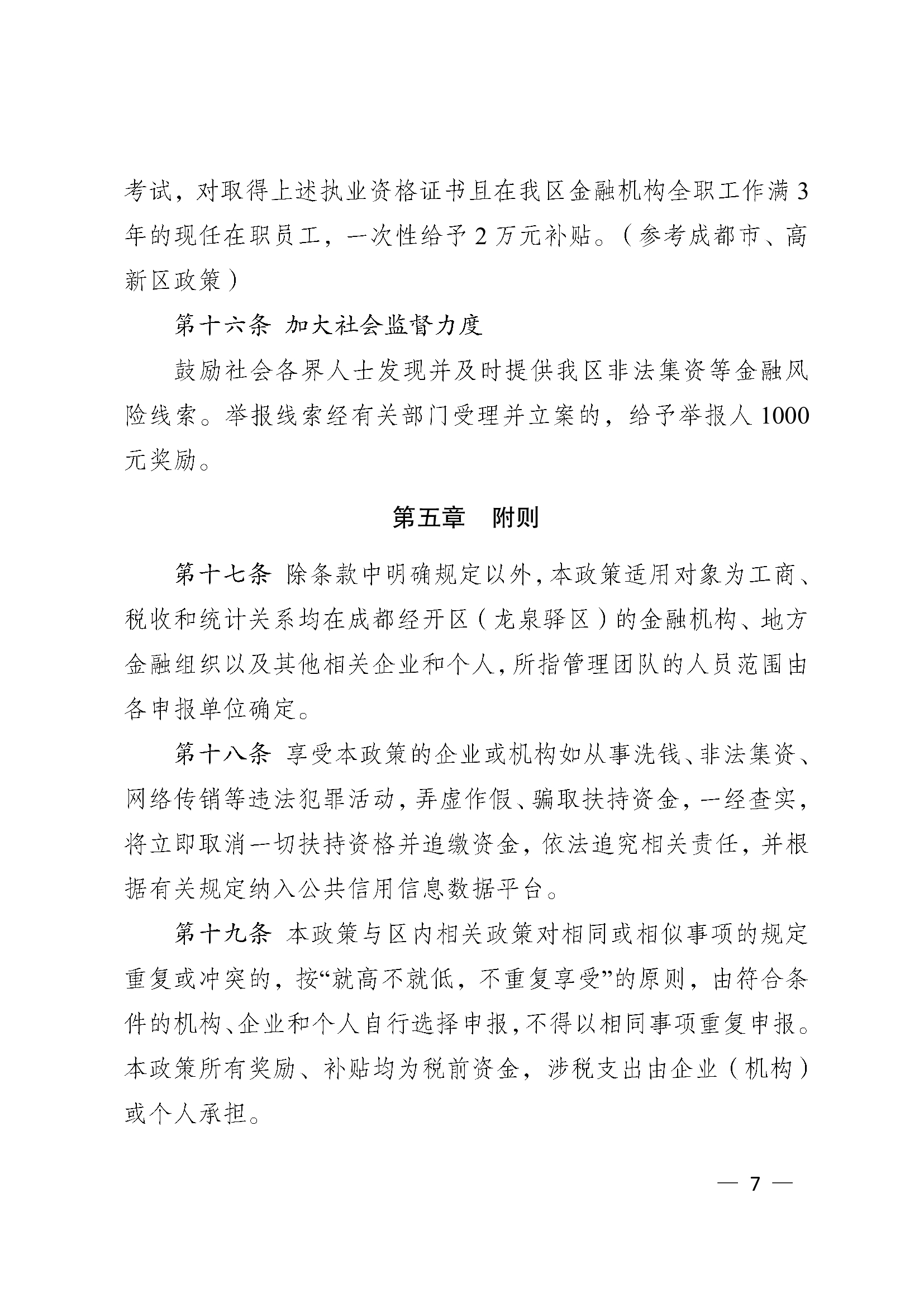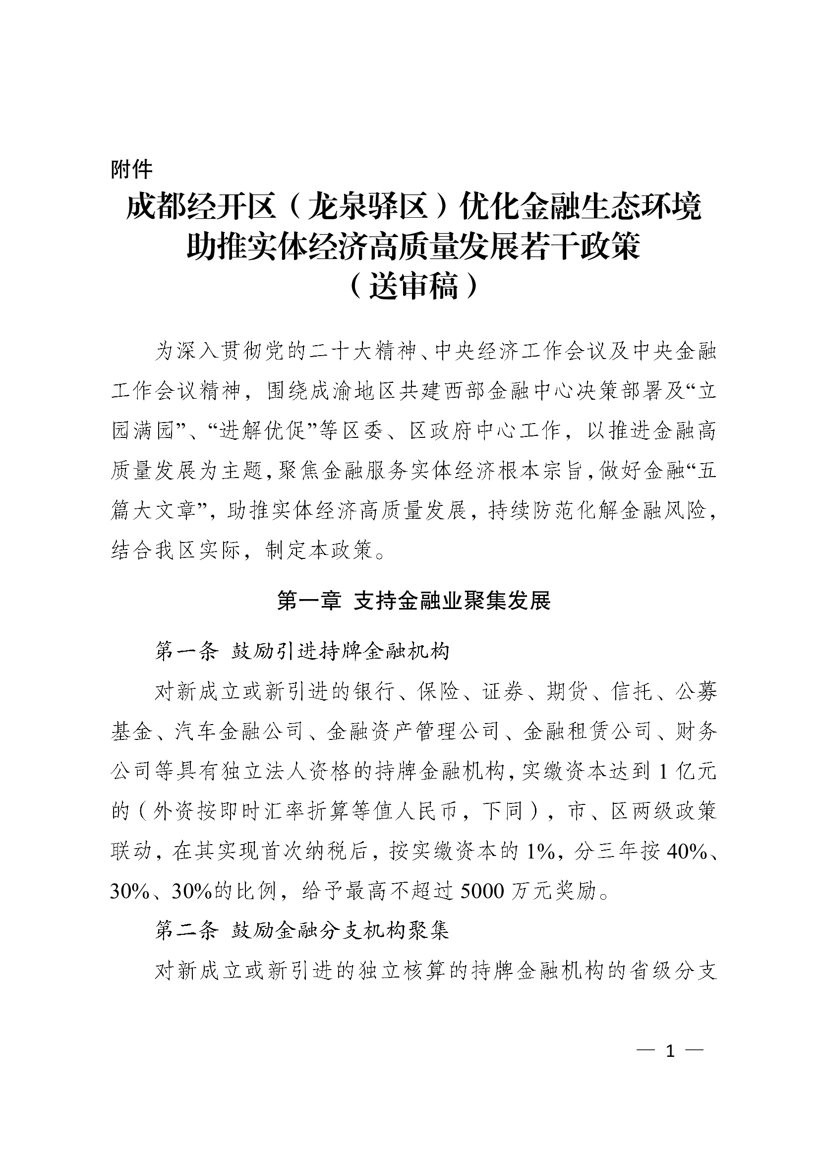 附件:成都经开区(龙泉驿区)优化金融生态环境助推实体经济高质量发展若干政策(送审稿)