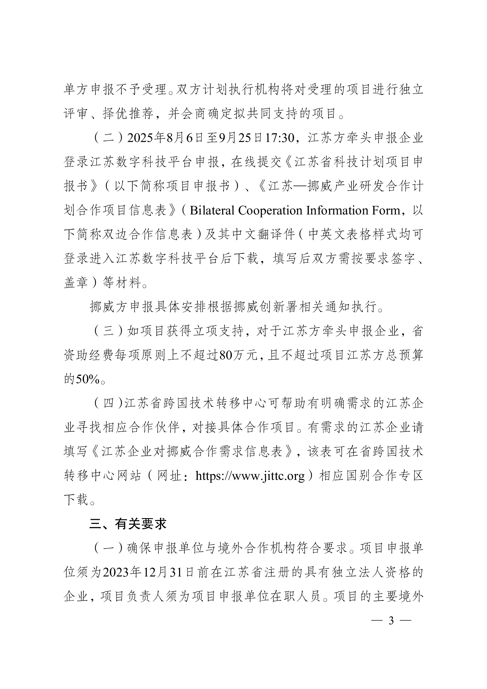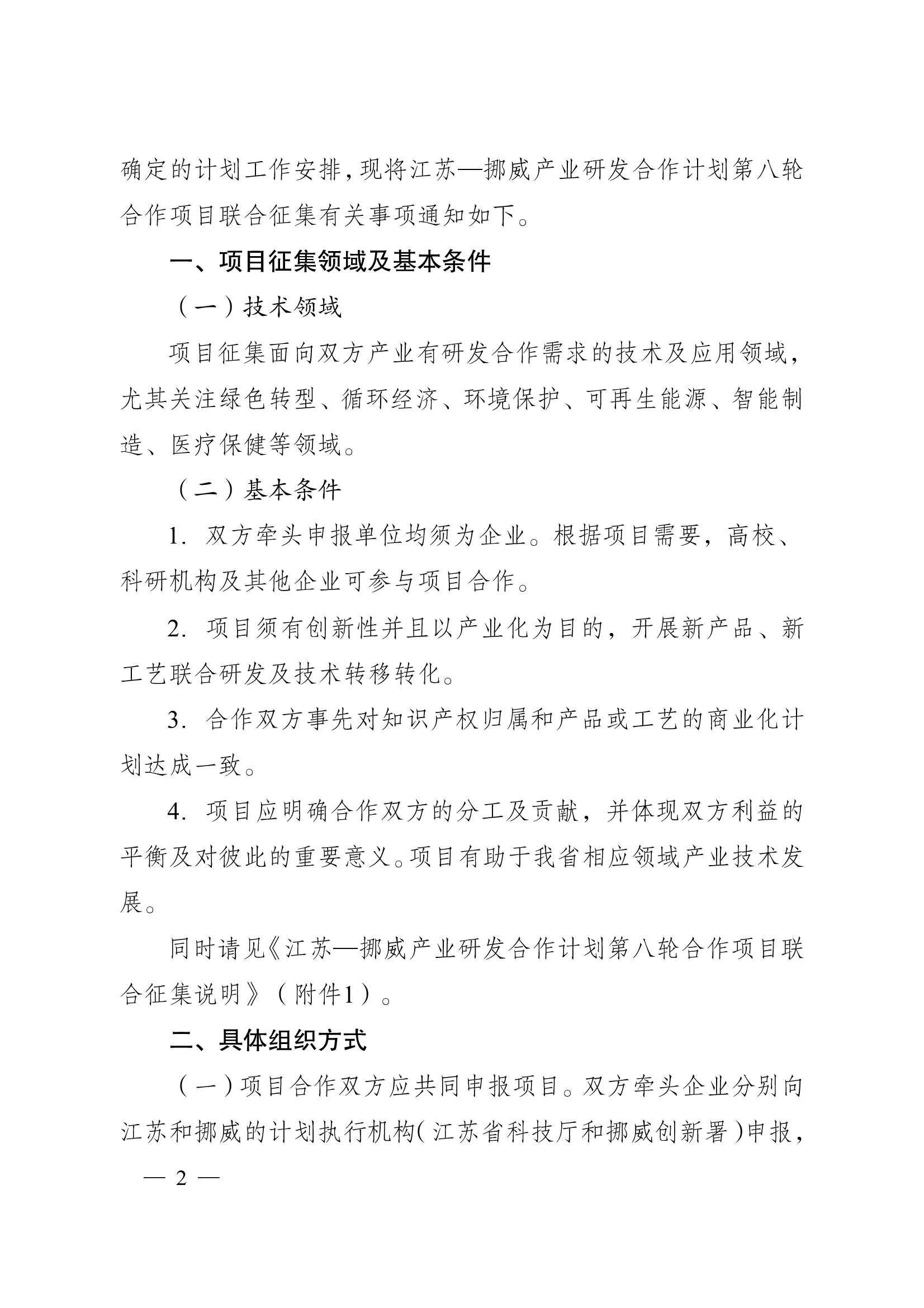 江苏省科学技术厅 关于开展江苏—挪威产业研发合作计划第八轮合作项目联合征集的通知