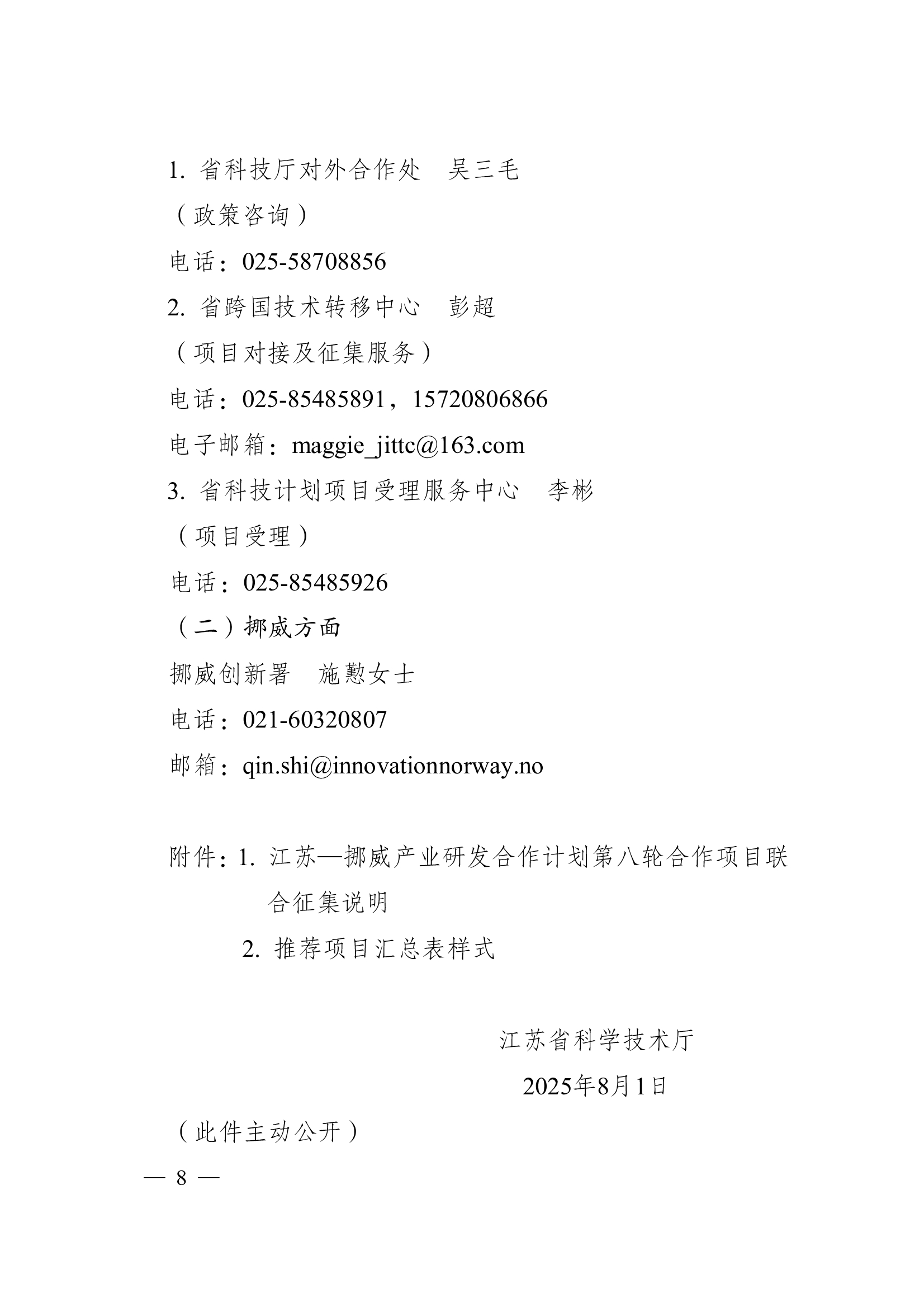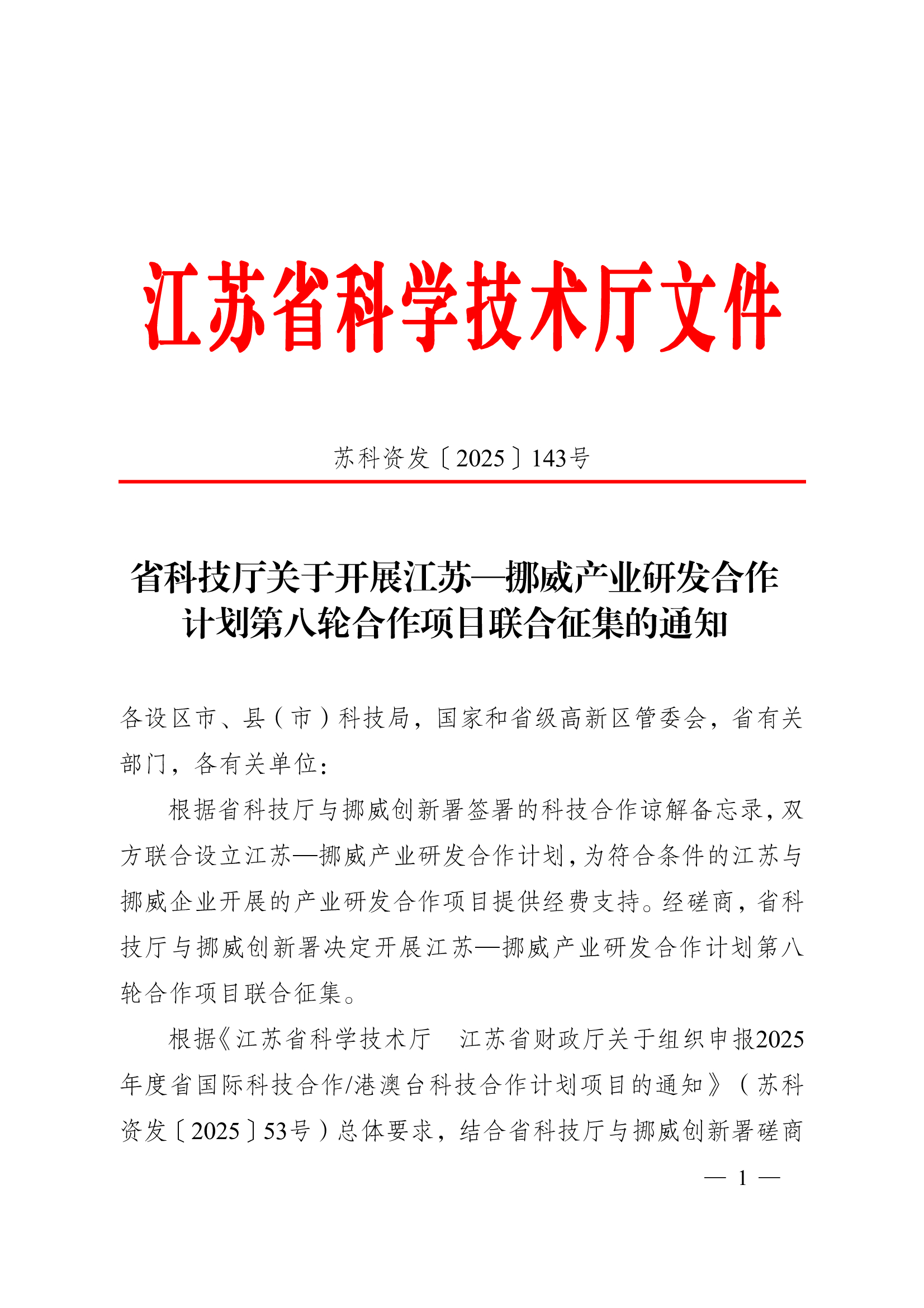 江苏省科学技术厅关于开展江苏—挪威产业研发合作计划第八轮合作项目联合征集的通知