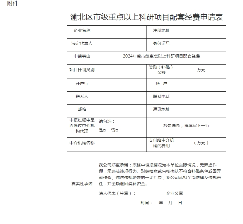 附件:渝北区市级重点以上科研项目配套经费申请表