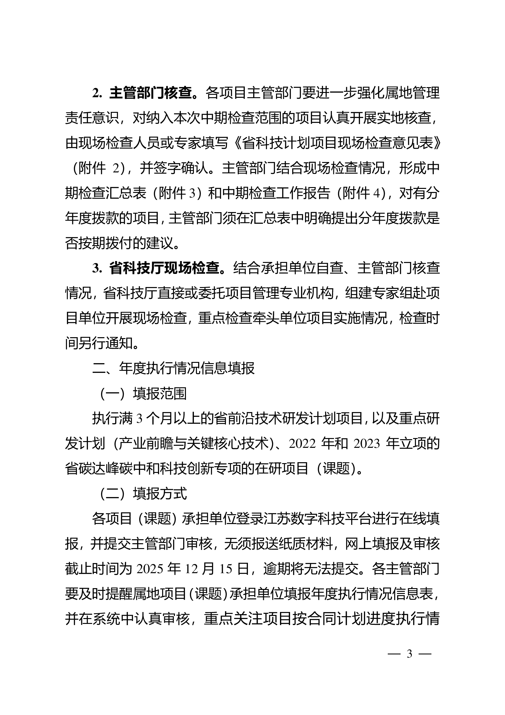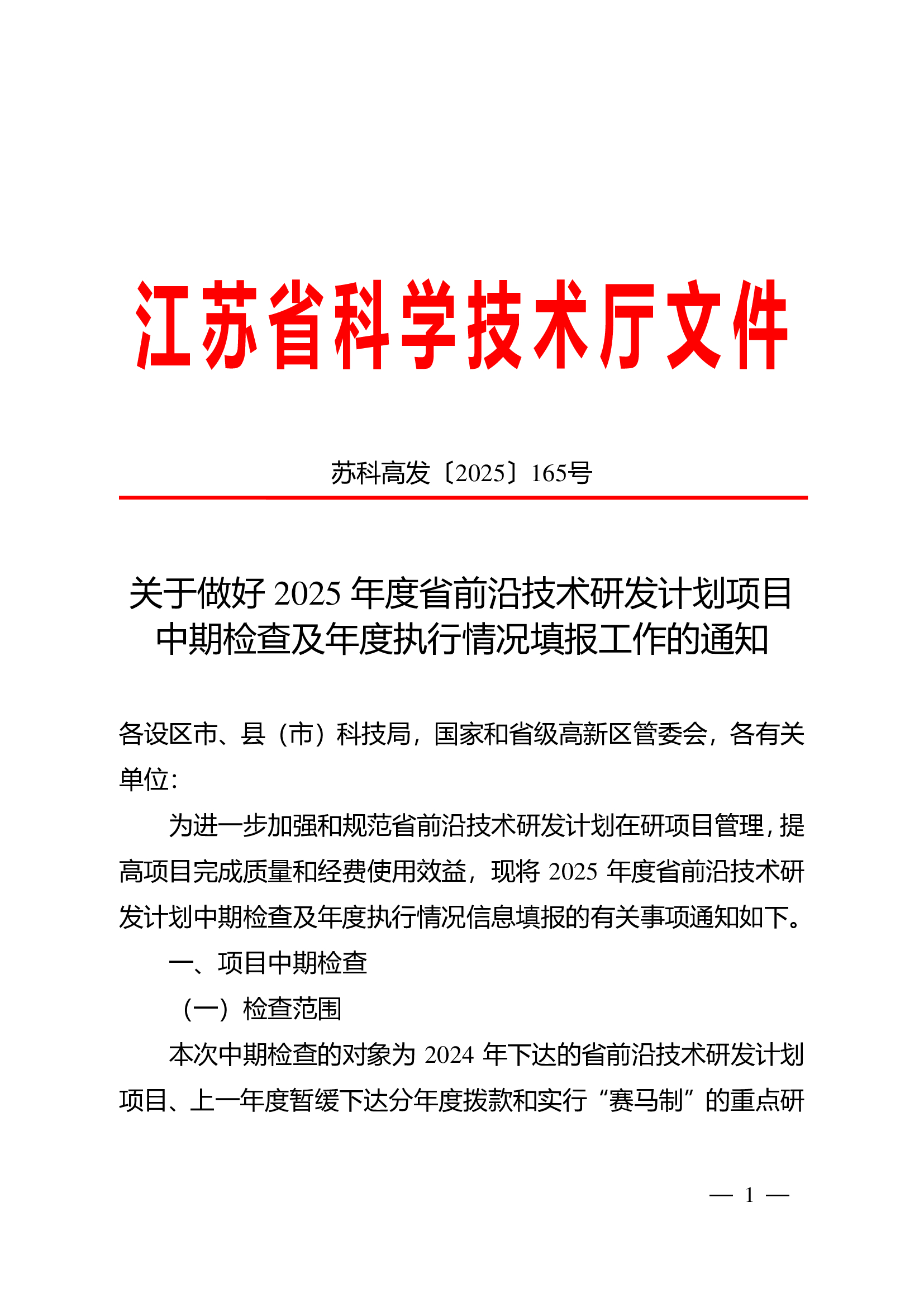 江苏省科学技术厅关于做好2025年度省前沿技术研发计划项目中期检查及年度执行情况填报工作的通知