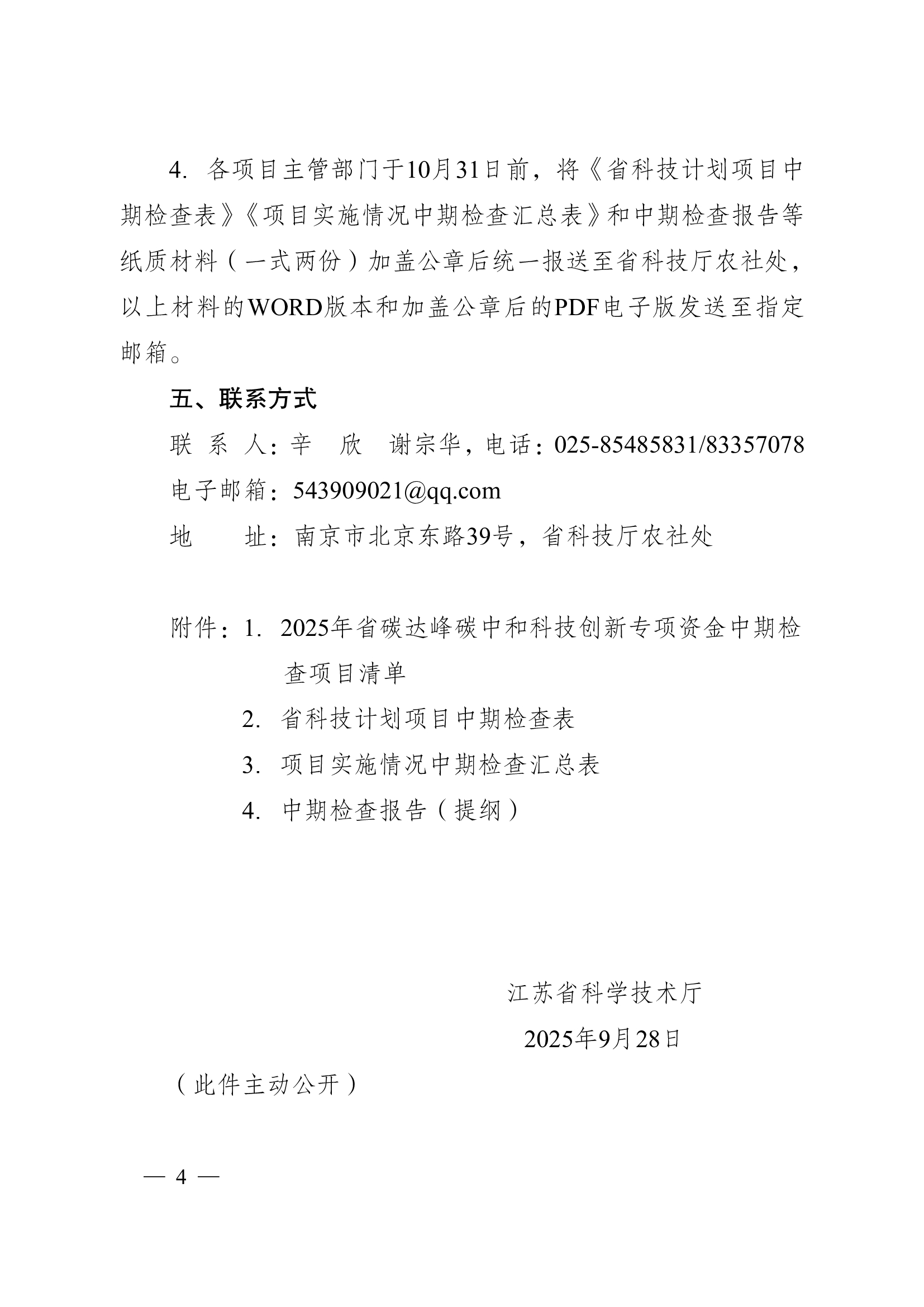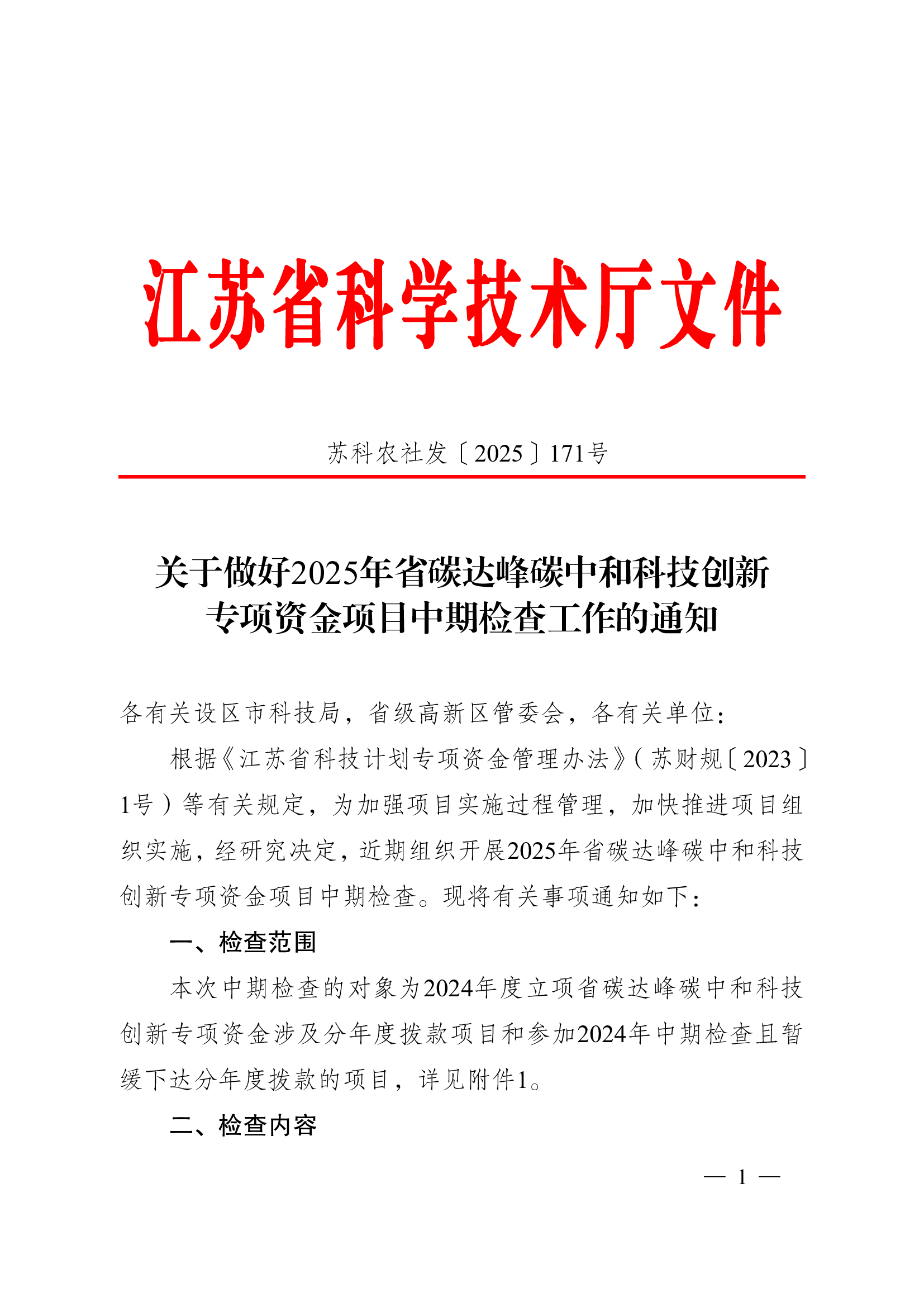 江苏省科学技术厅关于做好2025年省碳达峰碳中和科技创新专项资金项目中期检查工作的通知