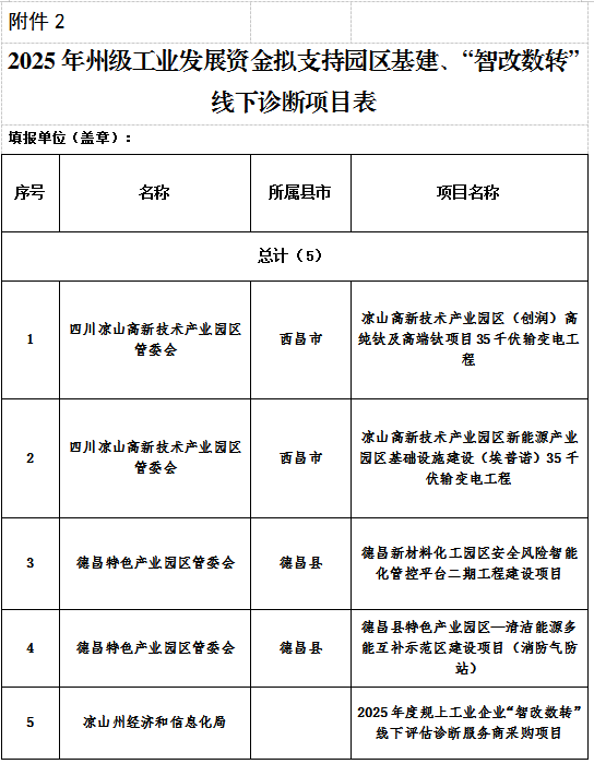 2.2025年州级工业发展资金拟支持园区基建、“智改数转”线下诊断项目表
