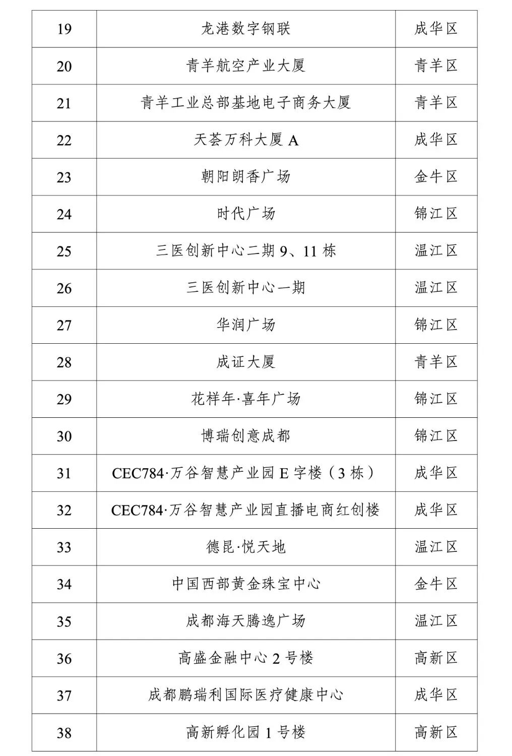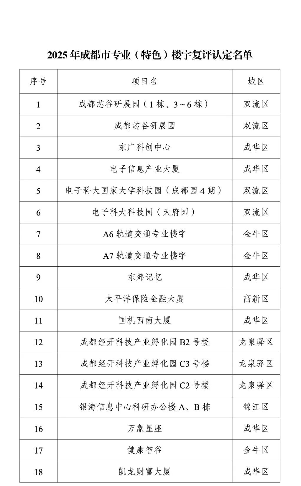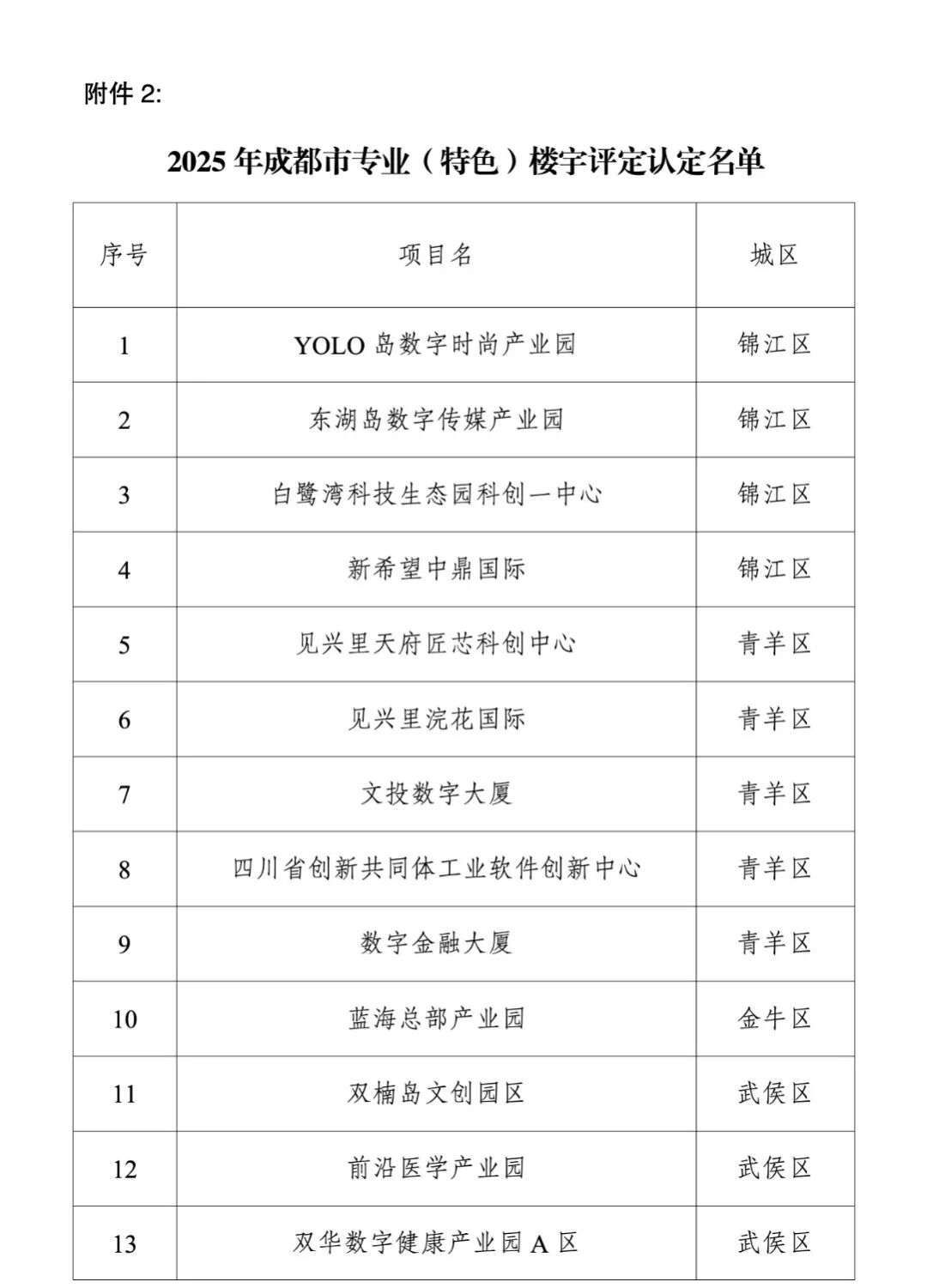 关于2025年成都市商务楼宇国家标准等级及专业(特色)楼宇评定结果的公示
