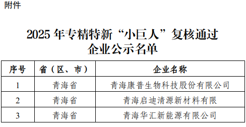 为深入贯彻习近平总书记关于激发涌现更多专精特新中小企业的重要指示批示精神,工业和信息化部开展了2025年专精特新“小巨人”企业认定和复核工作,已完成相关审核,现将我省通过审核的企业名单予以公示(见附件)。