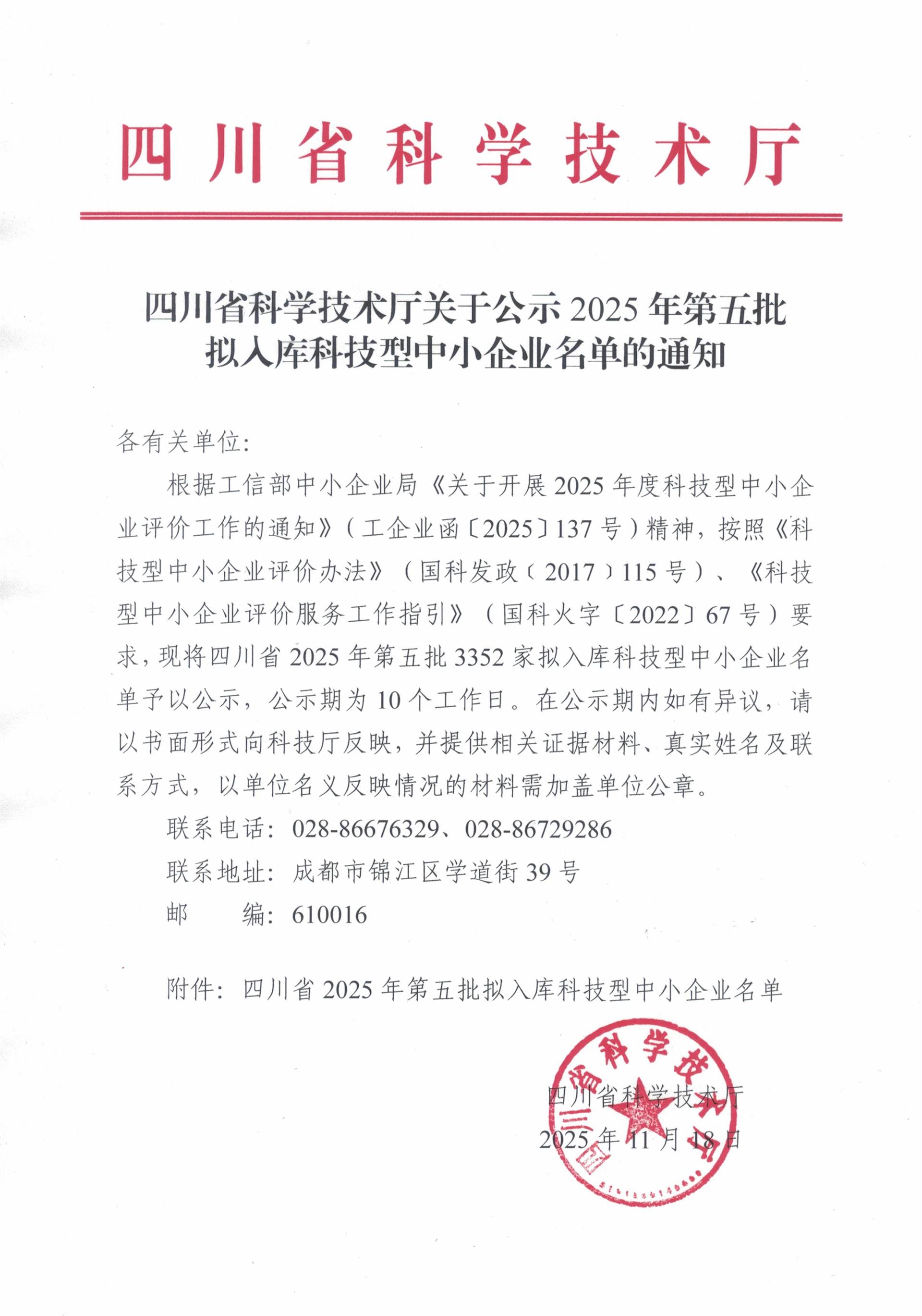 四川省2025年第5批拟入库科技型中小企业名单公示