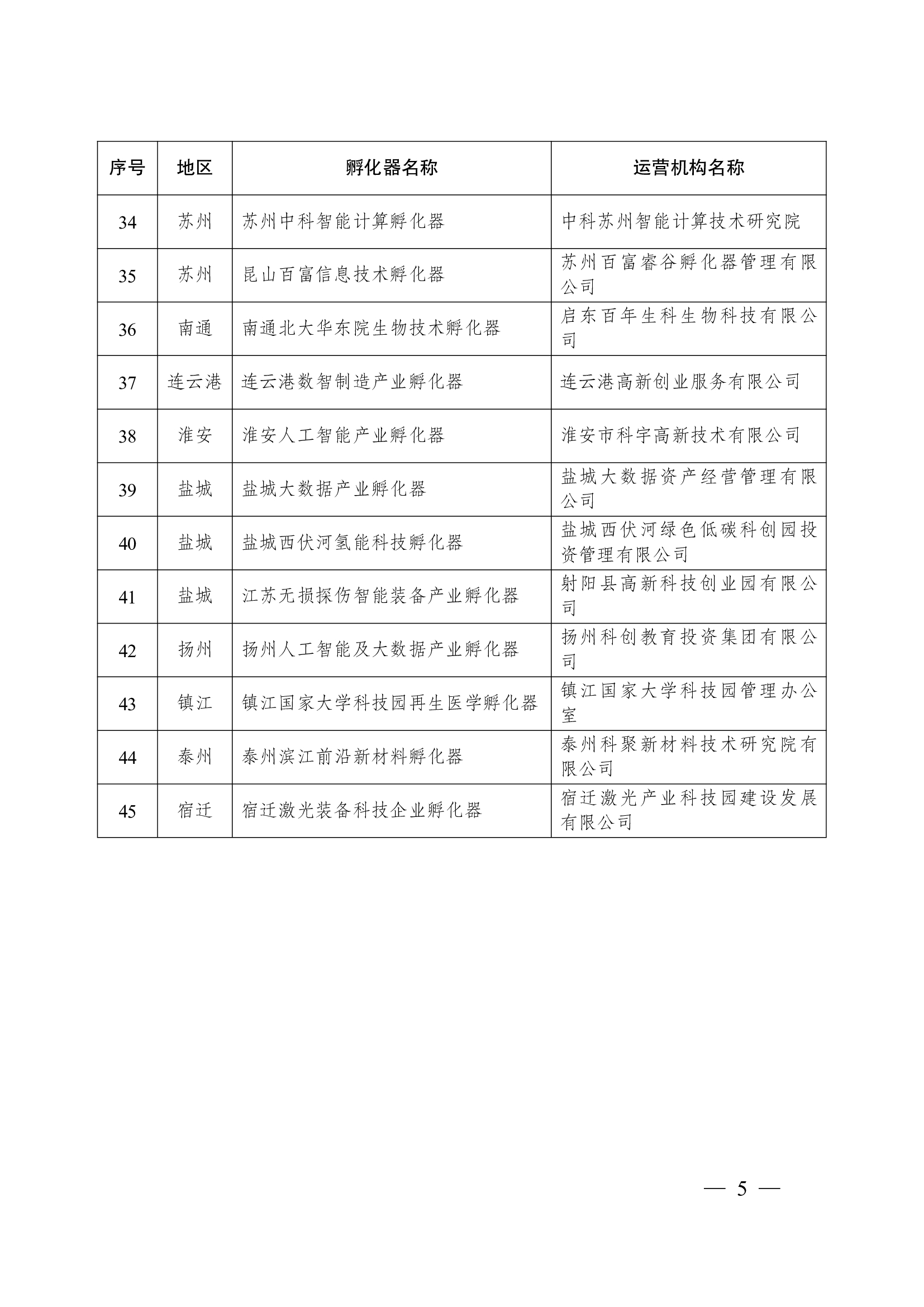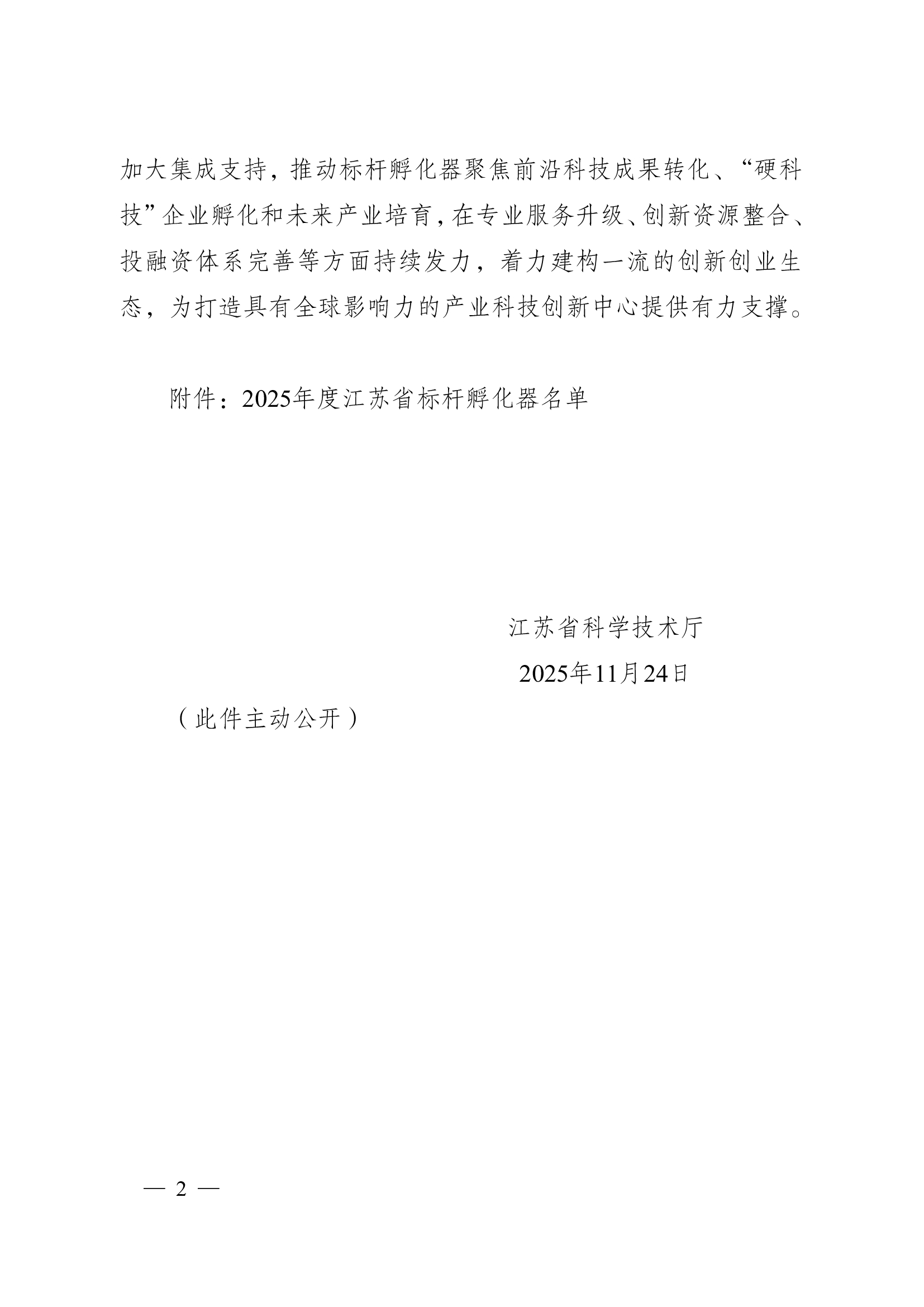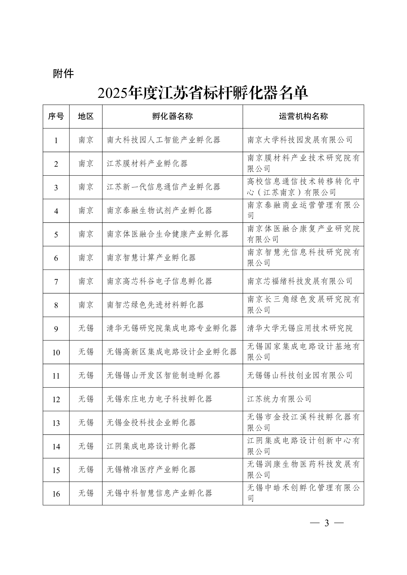 省科学技术厅关于公布2025年度江苏省标杆孵化器名单的通知