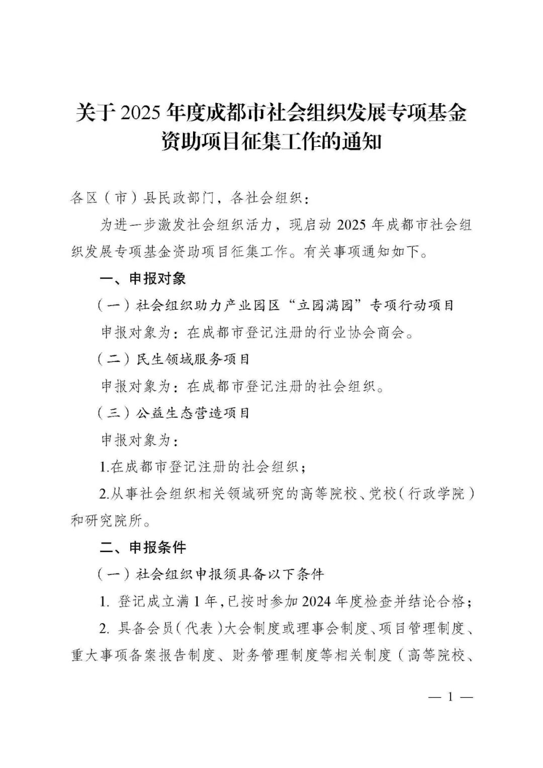 关于2025年度成都市社会组织发展专项基金资助项目征集工作的通知