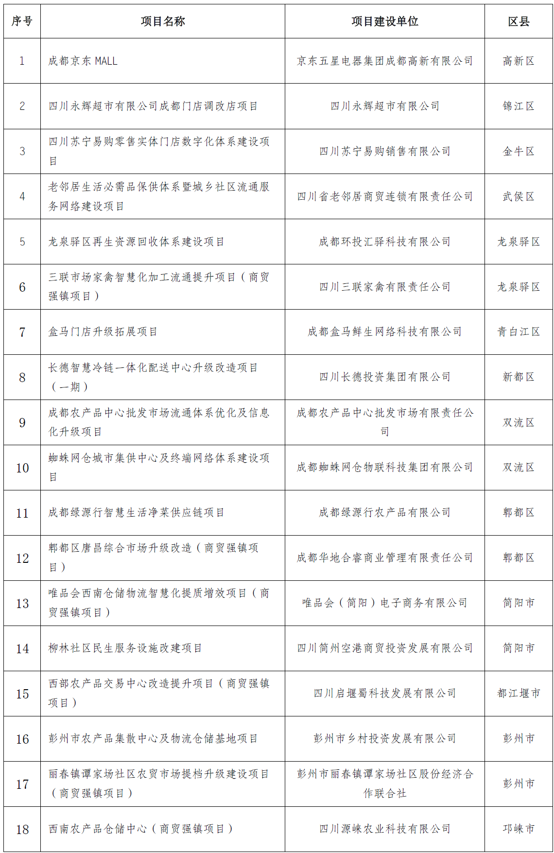 根据《财政部办公厅商务部办公厅关于支持建设现代商贸流通体系试点城市的通知》(财办建〔2024〕21号)和《成都市现代商贸流通体系试点项目和资金管理工作方案》工作要求,经专家组评审,确定以下24个拟支持项目和5个递补项目,现予以公示。公示期自2025年12月18日起至2025年12月26日止。