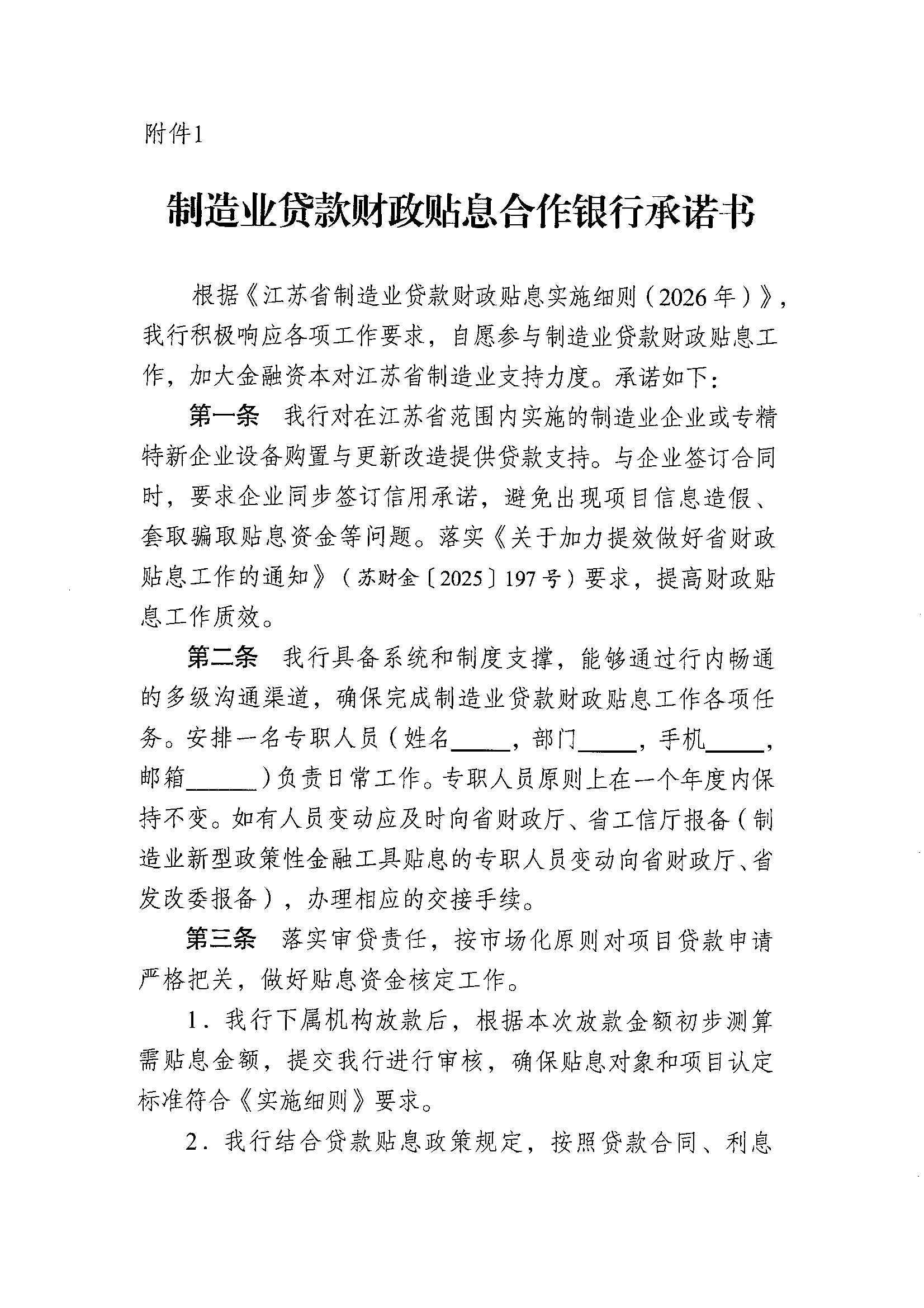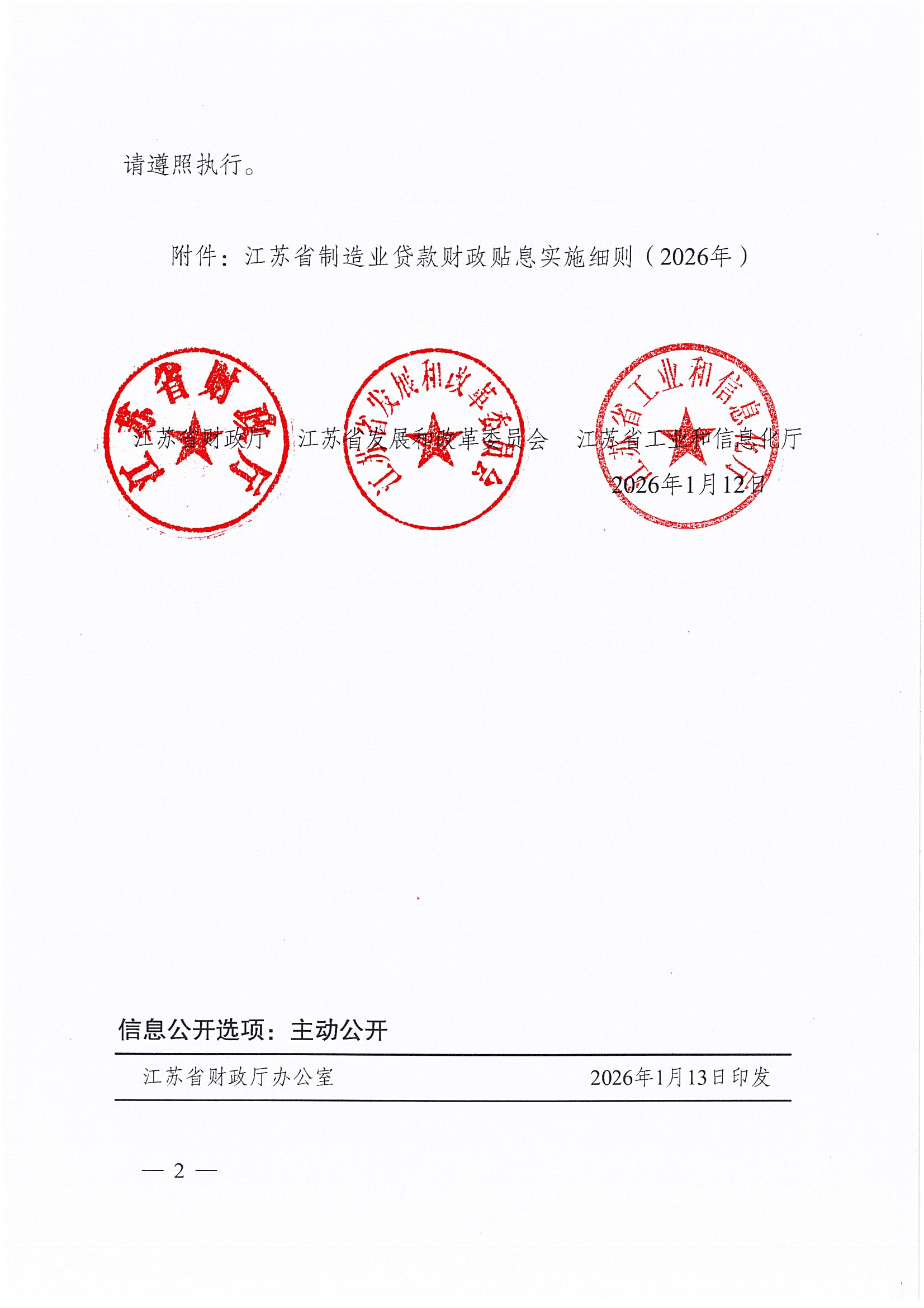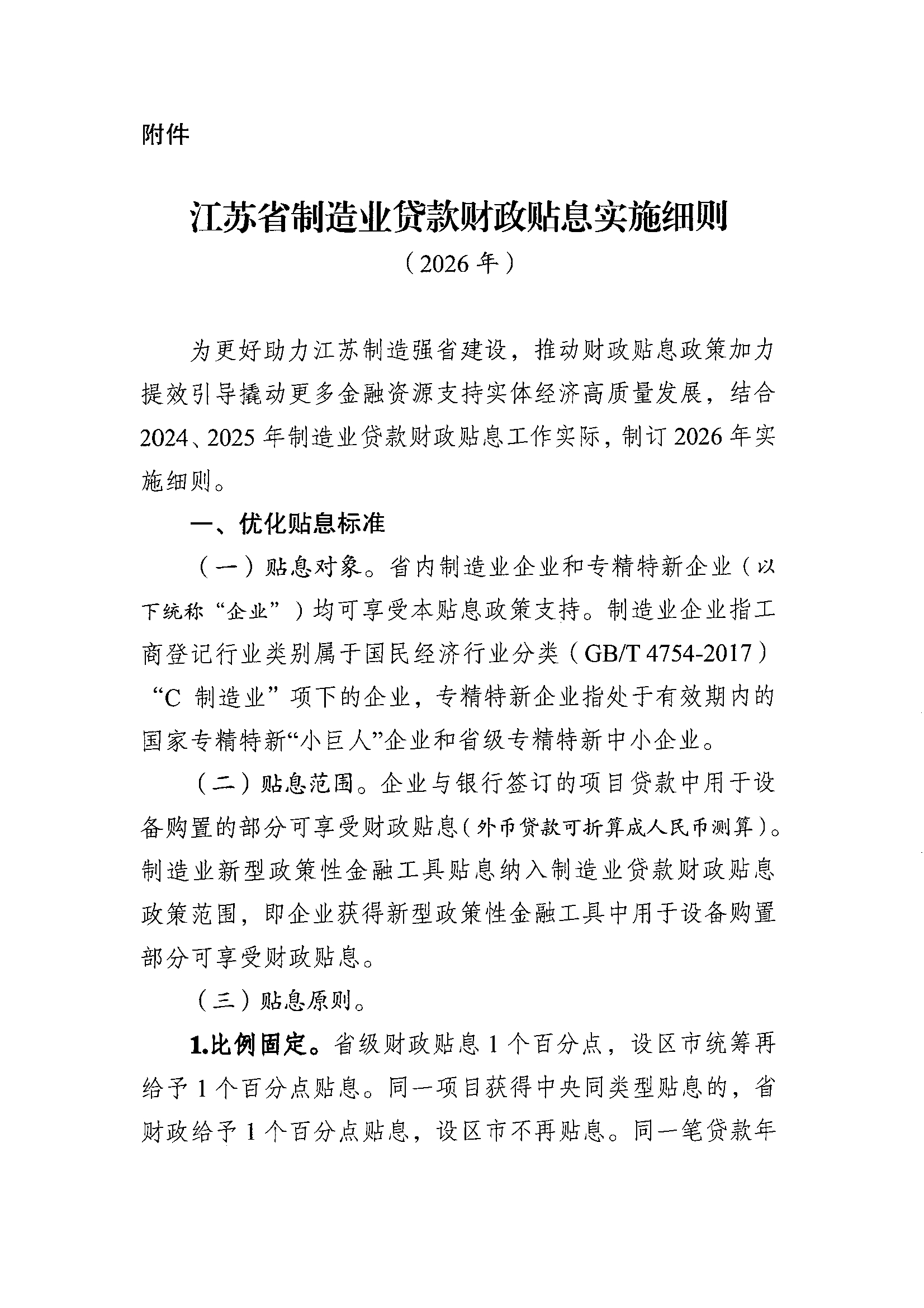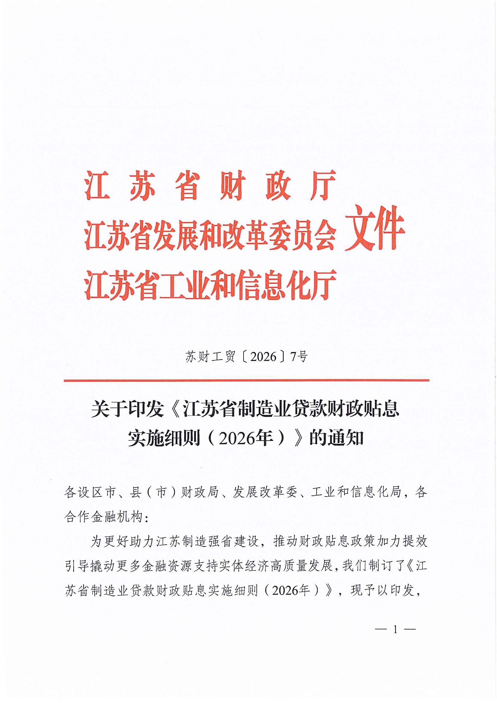 关于印发《江苏省制造业贷款财政贴息实施细则(2026年)》的通知
