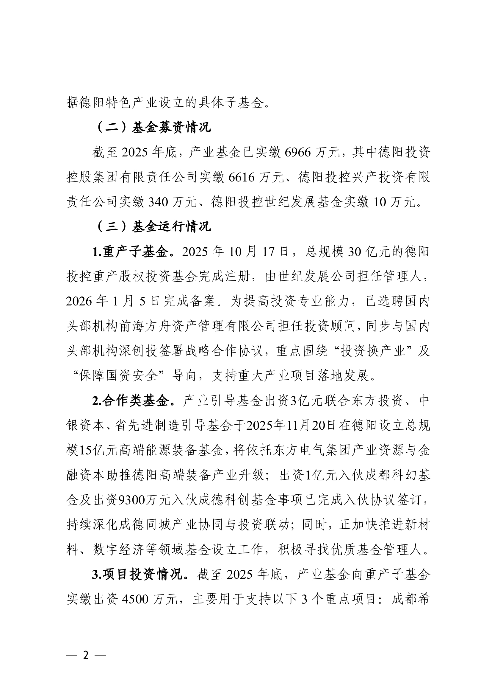 德阳市发展和改革委员会关于德阳市产业引导基金有关情况的报告