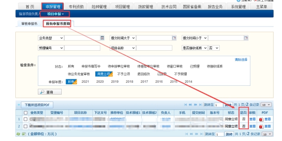 图6管理系统申报书(已提交纸件材料)状态显示图
