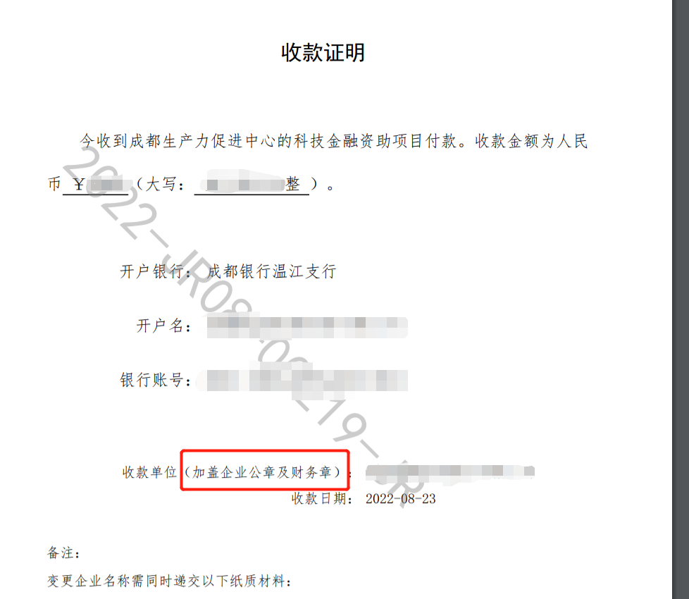《收款证明》及“更名申请”业务请咨询成都生产力促进中心,电话:65575925、65575926。