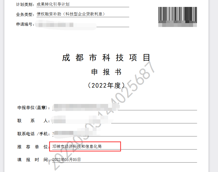 温馨提示:不清楚项目推荐单位的,可查看下载的申报书封面“推荐单位”处(如图8所示);不清楚推荐单位联系电话及地址的,可在管理系统首页—重要提示—区(市)县科技主管部门联系人及联系方式文件中查看。