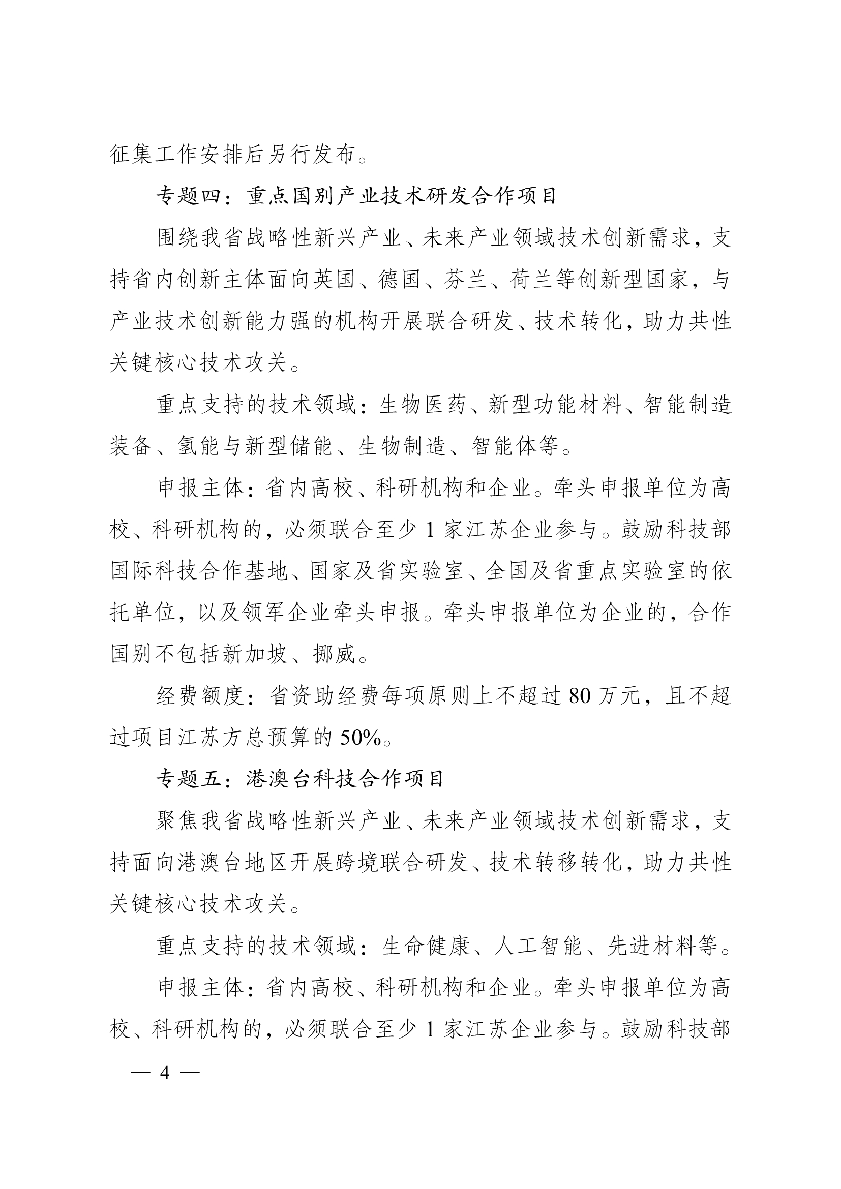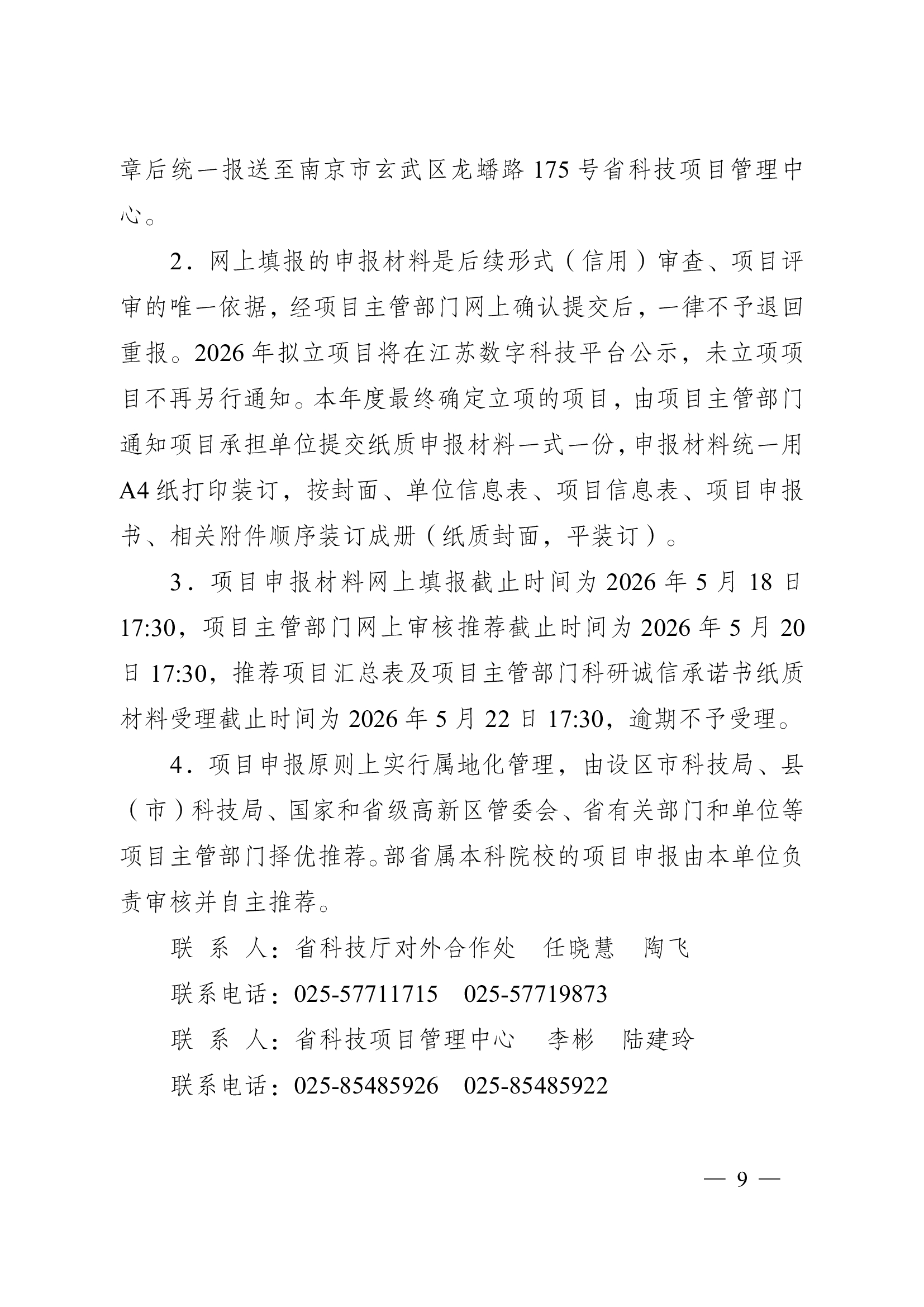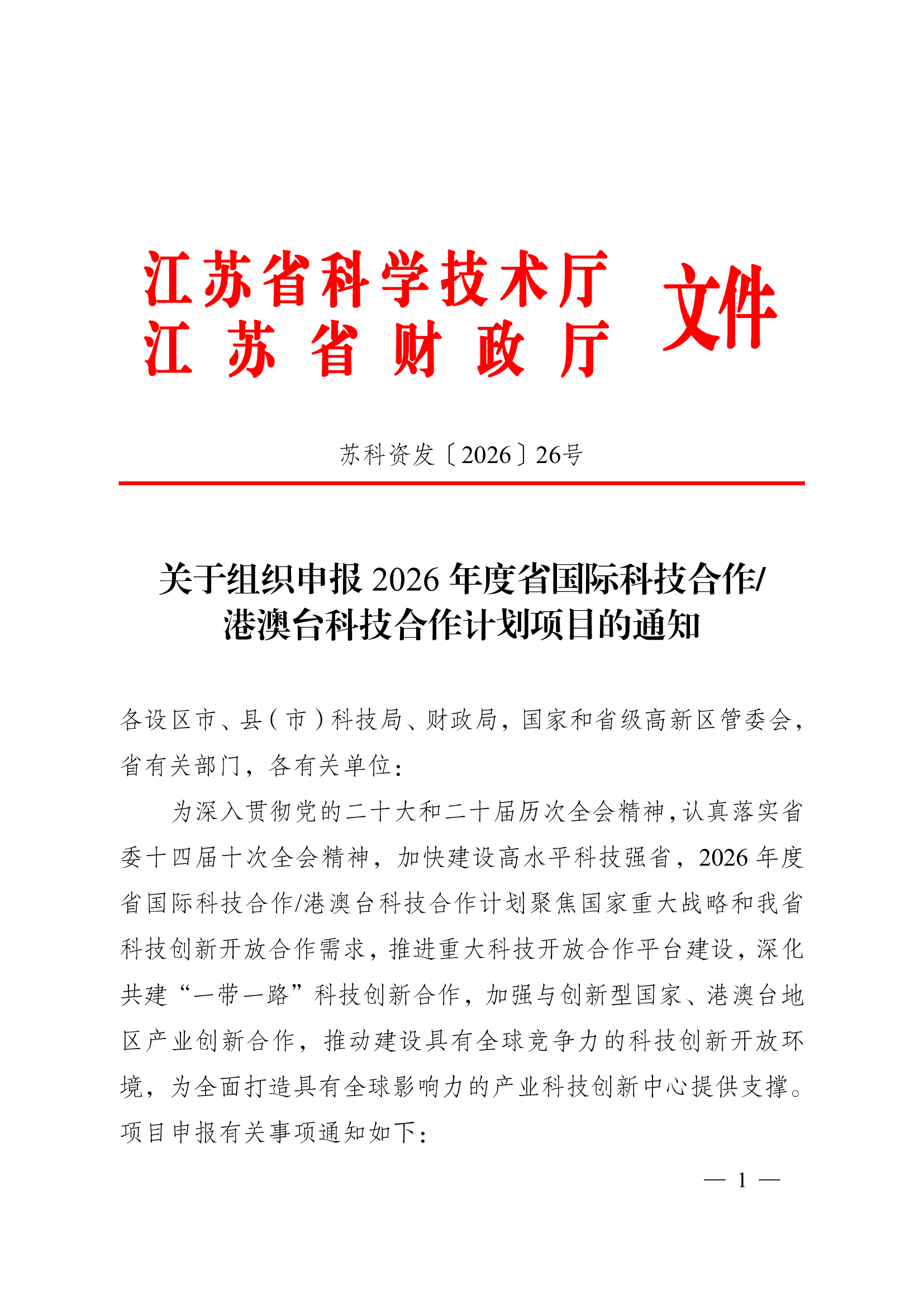 江苏省科学技术厅关于组织申报2026年度省国际科技合作/港澳台科技合作计划项目的通知