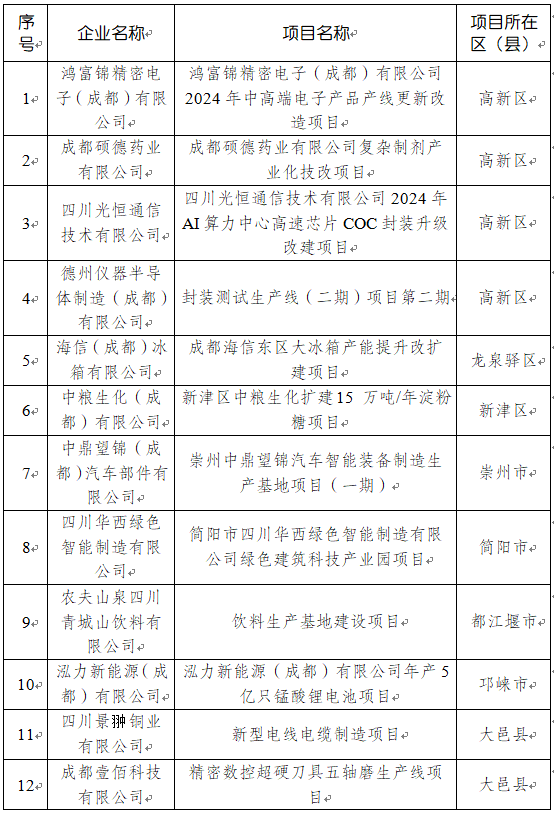 按照四川省经济和信息化厅《关于做好2025年四季度至2026年一季度工业项目竣工达产激励的通知》(川经信办函〔2025〕390号)、成都市经济和信息化局《关于组织申报2025年四季度至2026年一季度工业项目竣工达产激励工作的通知》要求,经企业申报、区(市)县推荐、专家评审等程序,现将四川省成都市2025年四季度至2026年一季度工业项目竣工达产激励拟推荐对象进行公示(名单附后)。