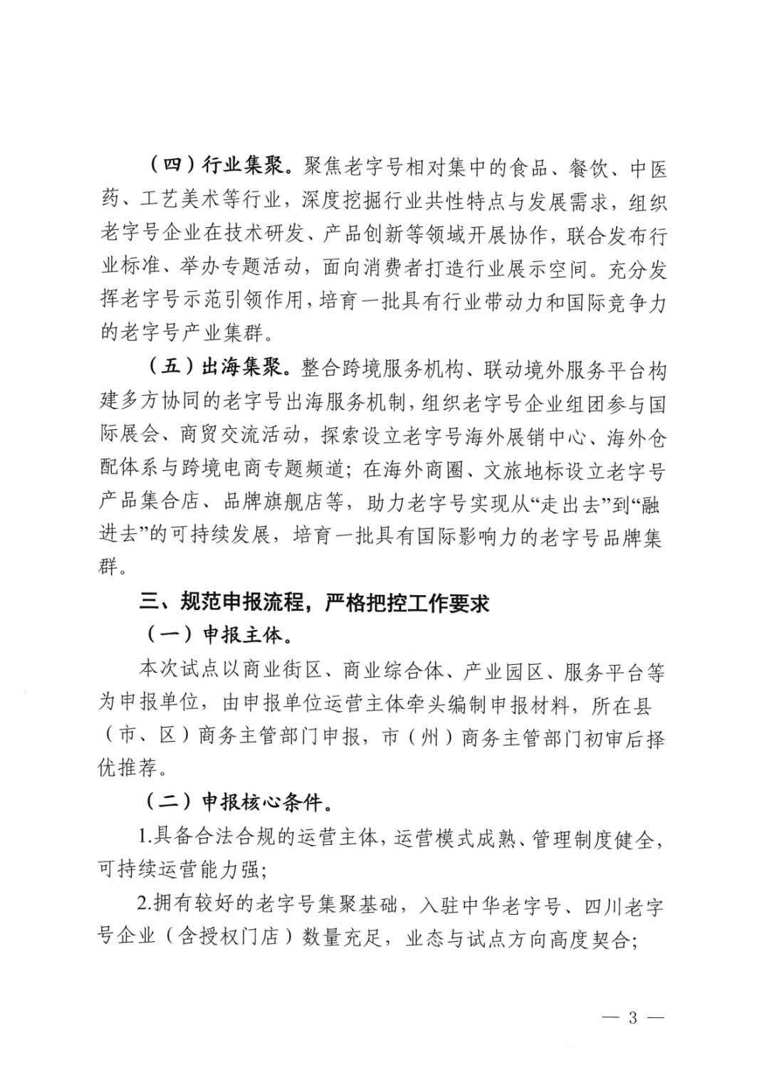 四川省商务厅关于组织开展老字号集聚发展试点申报工作的通知
