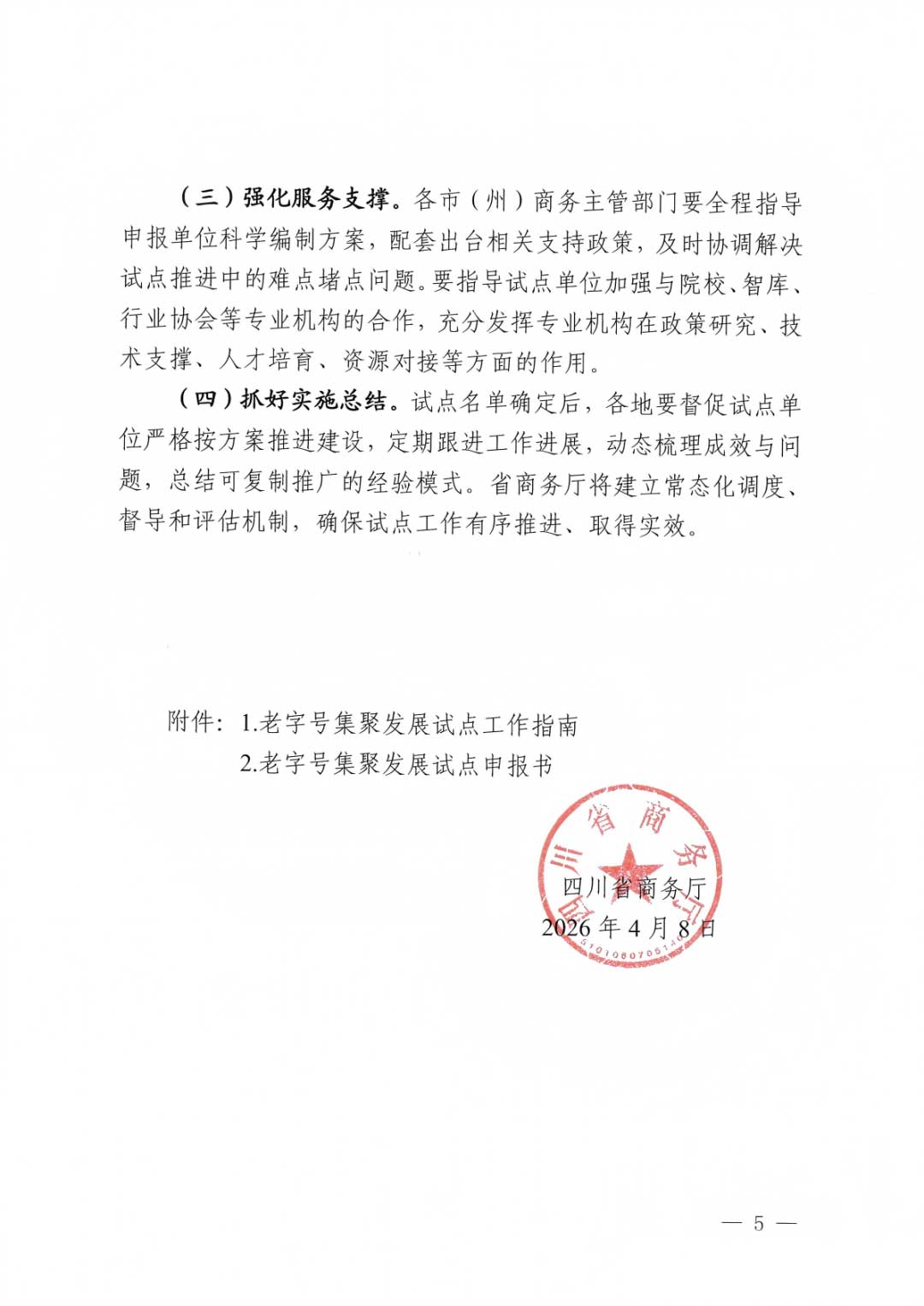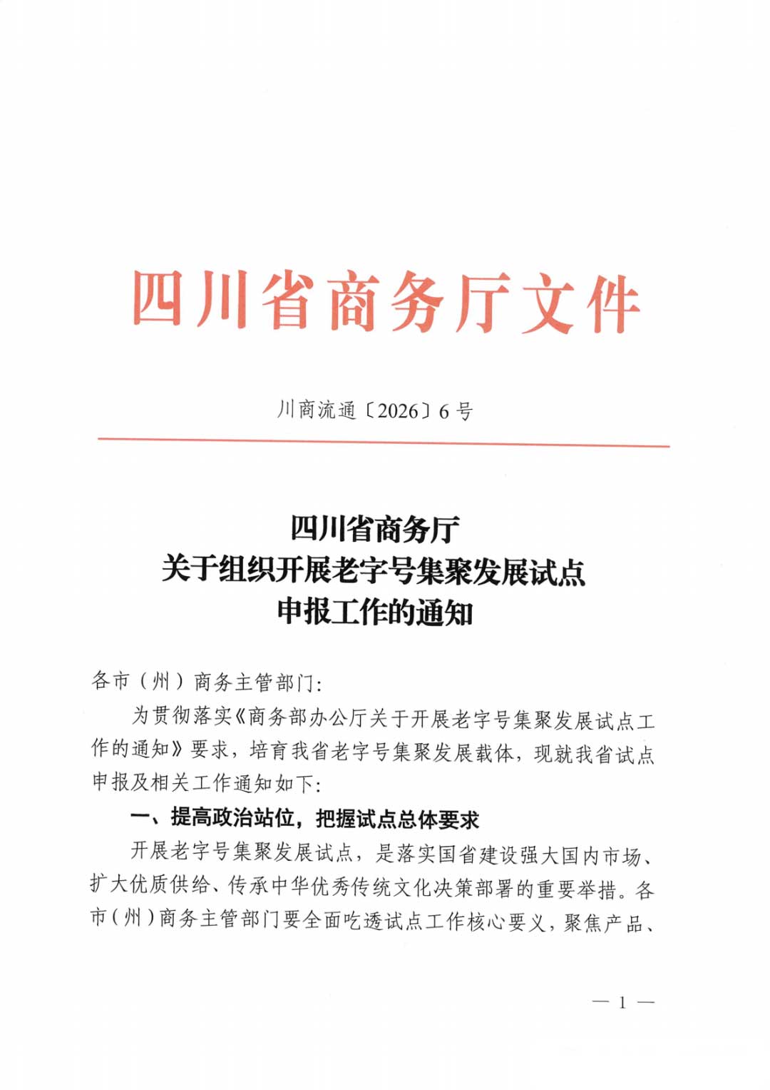 四川省商务厅 关于组织开展老字号集聚发展试点申报工作的通知
