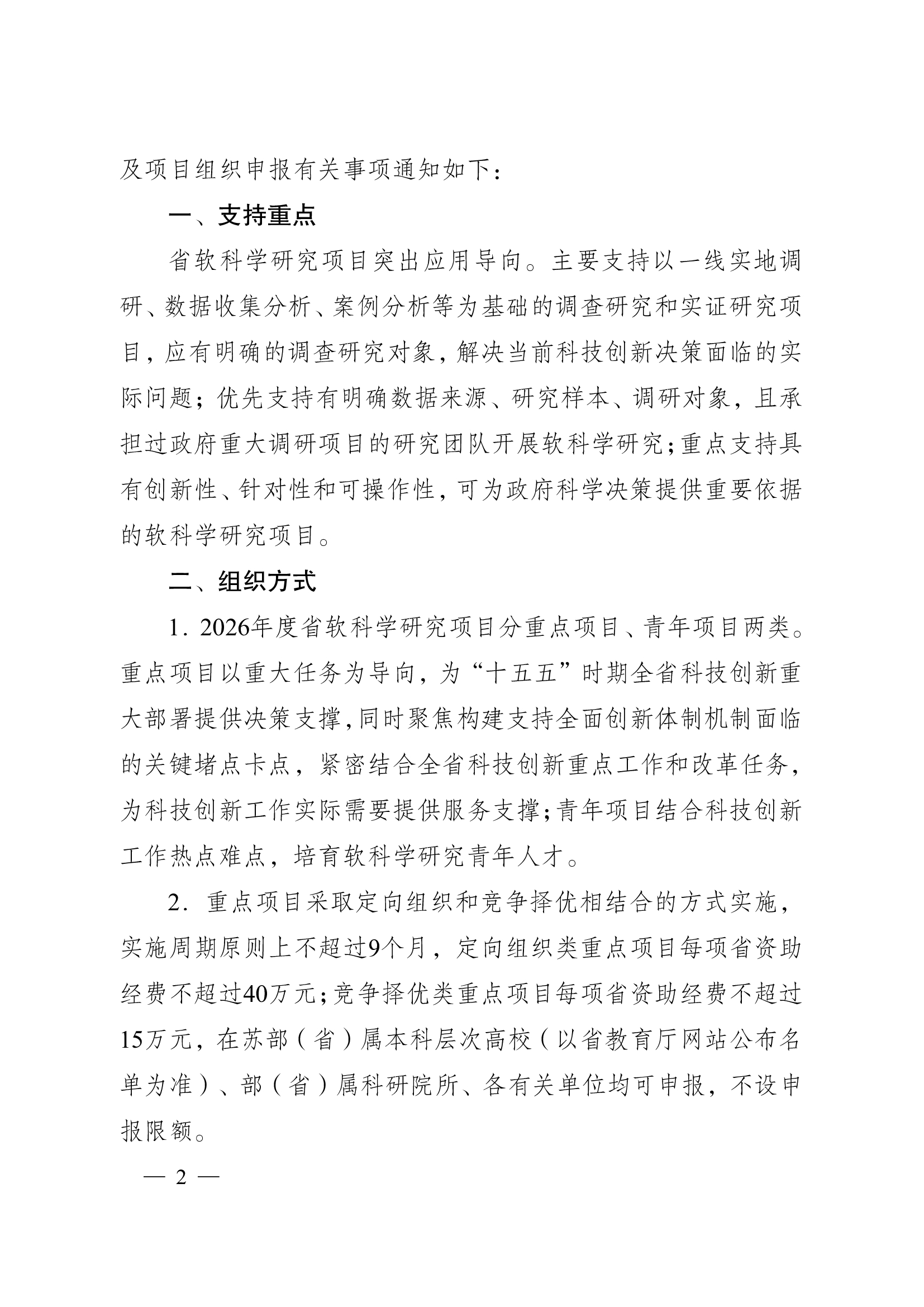 江苏省科学技术厅关于印发《2026年度省软科学研究项目指南》及组织申报项目的通知