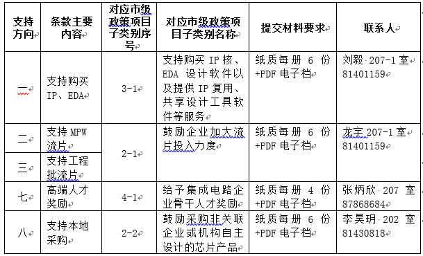 为降低集成电路企业研发成本,推动企业快速成长,促进集成电路设计产业高质量发展。按照《成都高新技术产业开发区关于支持集成电路设计产业发展的若干政策》(成高管发〔2020〕12号)和《<成都高新技术产业开发区关于支持集成电路设计产业发展的若干政策>实施细则》(成高电发〔2020〕7号),现开展集成电路政策申报工作。现将申报有关事宜通知如下: